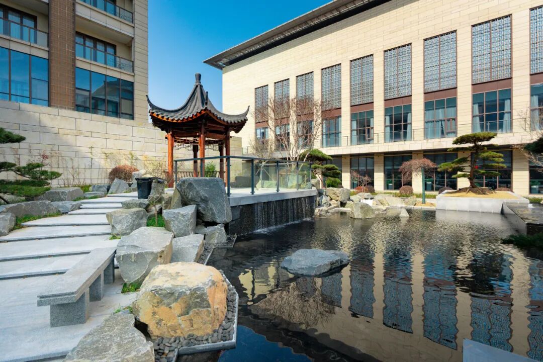 与蝶湖公园一路之隔,酒店内部更自带一方内湖,两侧回廊婉转相连,亭台错落、假山叠翠、松木掩映,与酒店汉唐风韵的建筑相映成景,东方美学的大气与园林诗意在此浑然一体,四季风韵各有千秋。