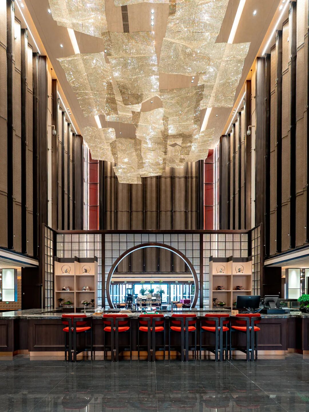 大堂挑高恢弘,以“扬帆起航”为设计灵感,将轮船元素巧妙融于空间细节,“渔网”艺术灯饰,致敬江海之地独有的耕海记忆。