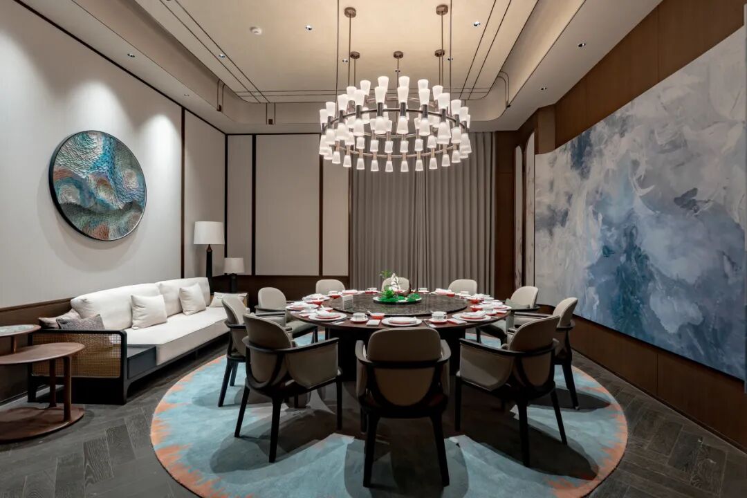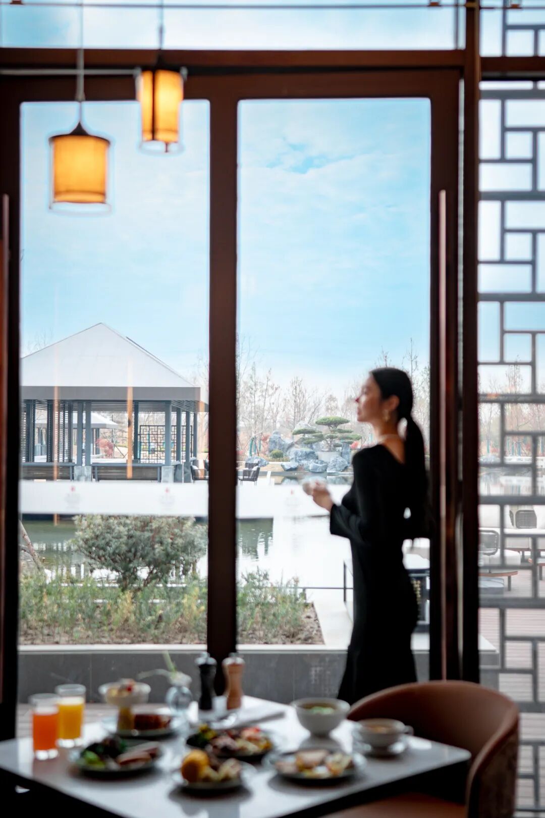 鲜艳全日餐厅,则是东西方饮食文化的交融之地,大面积玻璃幕墙将自然光影引入室内,源自启东评弹的琵琶艺术装置点缀其间,非遗之美与用餐氛围相融,江南文化的细腻与悠长,在目光所及处悄然流淌。