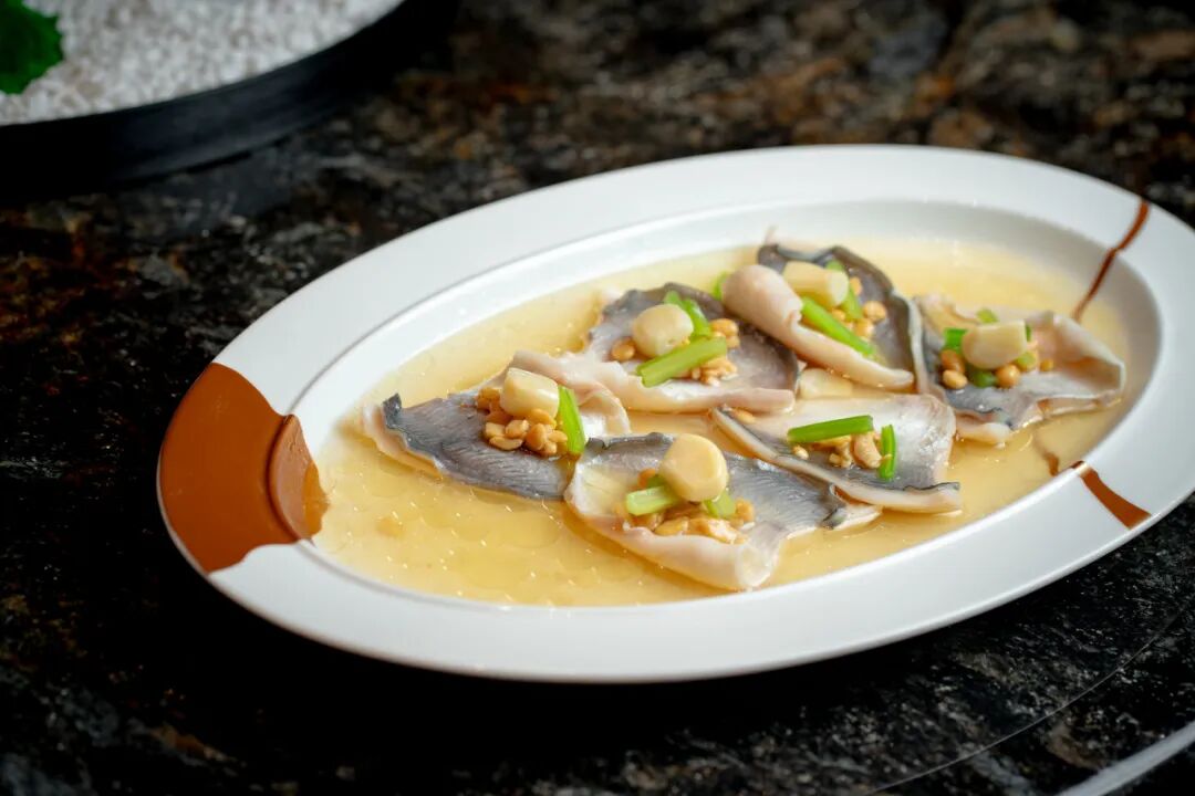 主厨匠心独运,兼采粤菜与淮扬菜之长,将吕四港现捕的江海时鲜融入菜品,搭配经典的“彩丰十味”,让东方饮食文化的美好,在舌尖绽放。