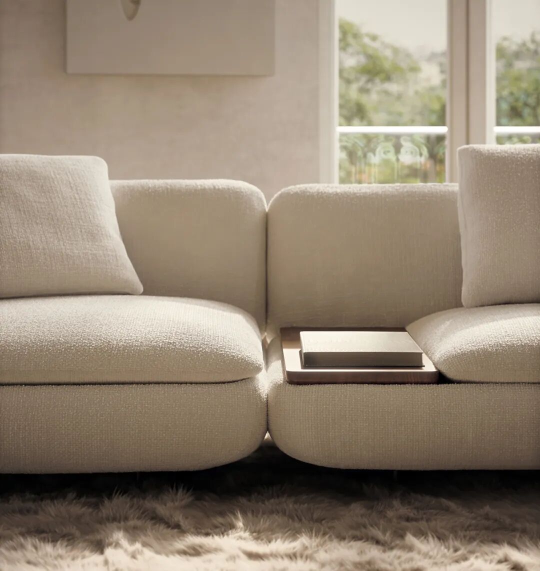 Vivienne系统的卓越,在于它将形式之美彻底服务于自由的生活。其模块化组件如同趣味积木,允许使用者根据空间尺度、家庭结构和生活场景,随心构建专属布局。它可以是一个面向景观的悠长休闲榻,也可以是一个促进亲密交谈的围合式客厅核心,抑或是一个在开放空间中划分出的宁静阅读角。更显智慧的是Minotti提供的定制选项:在特定模块中,可以嵌入工作台,成为一处充满个人趣味的“优雅一隅”。这种设计,深刻洞察了现代人对于空间功能复合化的需求,让休闲、阅读、工作、社交的边界变得柔和而流动。
