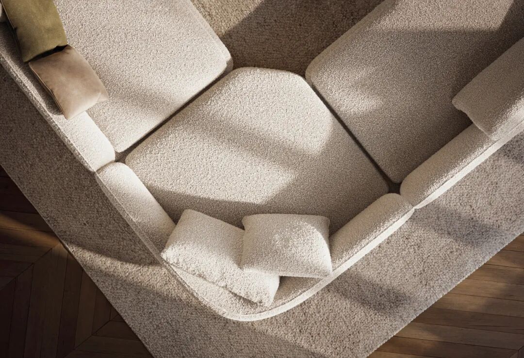 Vivienne模块化座椅系统,远不止是一组供人落座的家具;它是一个微缩的建筑景观,一个情感发生的容器。该系统的视觉核心,在于其创造的“悬浮感”,设计师运用了一个堪称巧妙的反差:上部是宽大、蓬松、充满体量感的软垫,给人以被云端包裹的温暖;下部则由精致、内凹的铝制细条承托。这种结构设计,在视觉上极大地削减了座垫的物理厚度,仿佛柔软的坐垫部分轻盈地漂浮于空中。这一细节,是意大利设计哲学的绝佳体现——它通过对隐藏结构和简化形式的精研,化解沉重,带来了灵动与优雅,正如GamFratesi所言:“在技术上非常复杂,在视觉上十分简约,这就是Vivienne的魅力。”