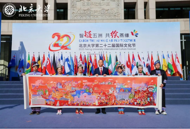 10月18日,在北京大学第二十二届国际文化节的开幕式上,姜国华副书记代表学校接受了这一捐赠画作。青春之北大,青春农民画,在这个阳光明灿的早上相融共生。