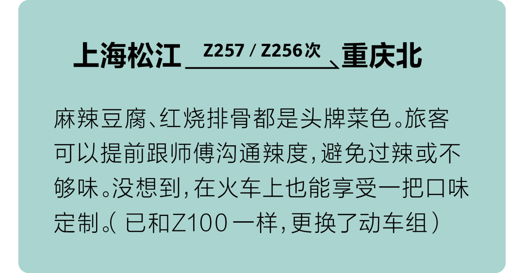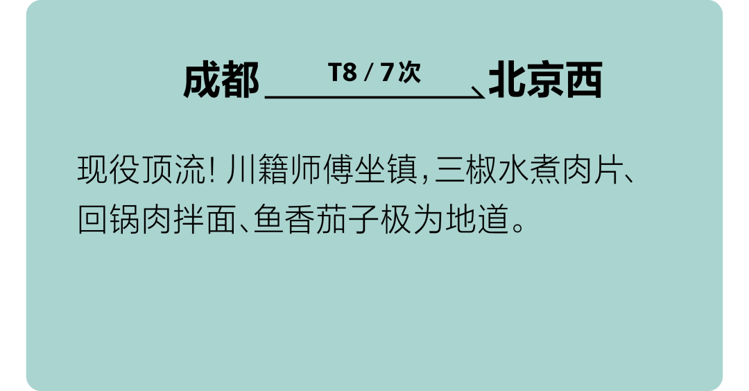 特别是当你走进餐车的车厢, 一口炒锅,一勺豆瓣,热油与花椒缠绵颠簸在一起时,立马会觉得,漫长路途也变得好消磨。