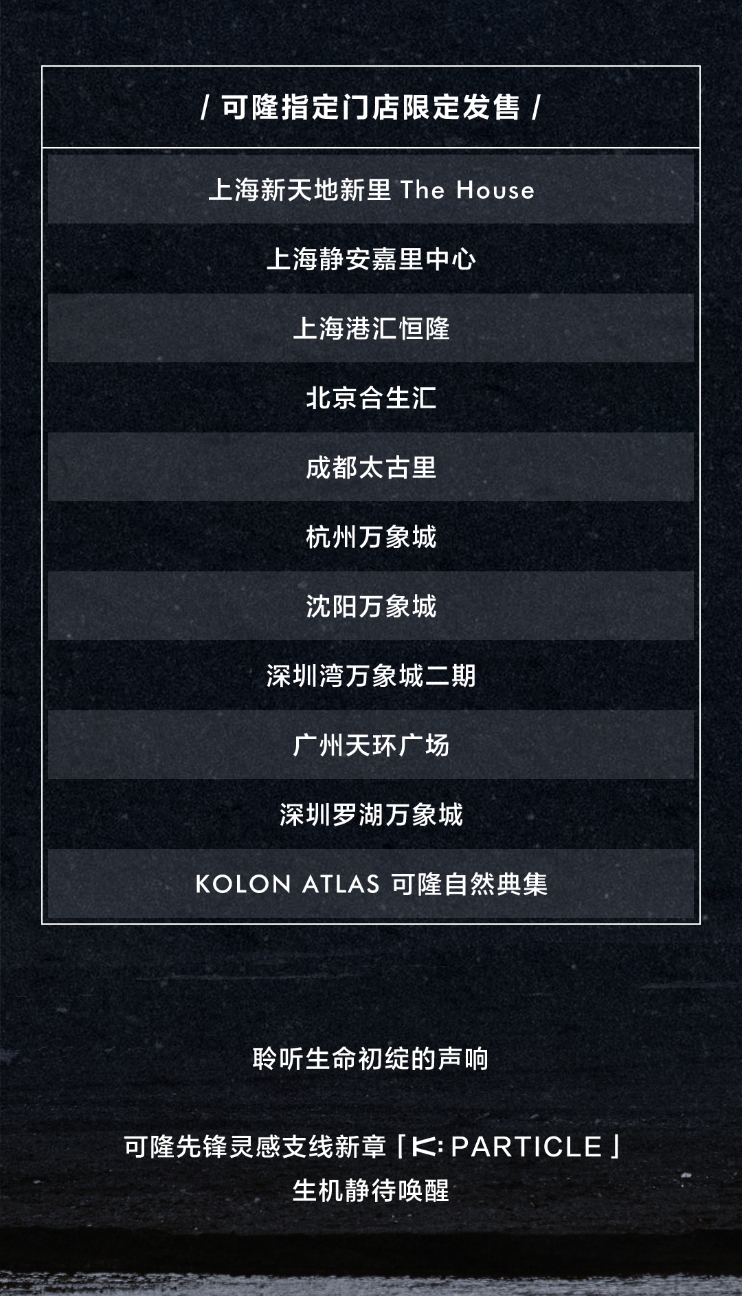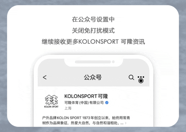 文章内容来源于公众号:KOLONSPORT可隆,点此可查看原文,内容版权归相关企业所有,本网站仅供交流学习。若涉及版权问题或存在侵权情况,请及时与我们联系,我们将第一时间进行删除处理。
