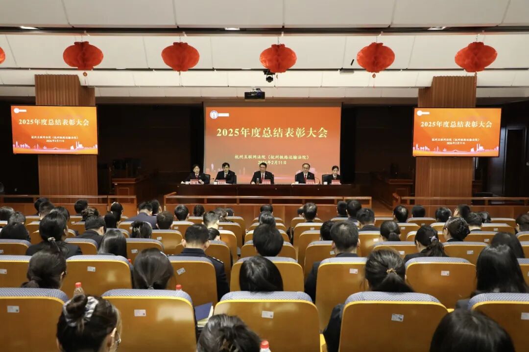 2025年,杭州互联网法院深入贯彻习近平新时代中国特色社会主义思想和习近平法治思想,紧紧围绕中心大局,聚焦“公正与效率”工作主题,抓实党建强基铸魂,以深入贯彻中央八项规定精神学习教育为契机,深学细悟筑牢忠诚、凝心聚力引领发展,在促进党建与业务深度融合上取得新进展;坚持内部挖潜与源头治理相结合,在做实定分止争、提质增效上取得新成效;坚持以裁判树规则、以规则促治理、以治理促发展,在强化履职担当、服务大局上展现新作为;坚持深化跨境贸易法庭建设,在统筹推进国内法治与涉外法治上实现新跨越;坚持深入落实勤廉并重,在做实严管厚爱、强化能力提升上迈上新台阶。
