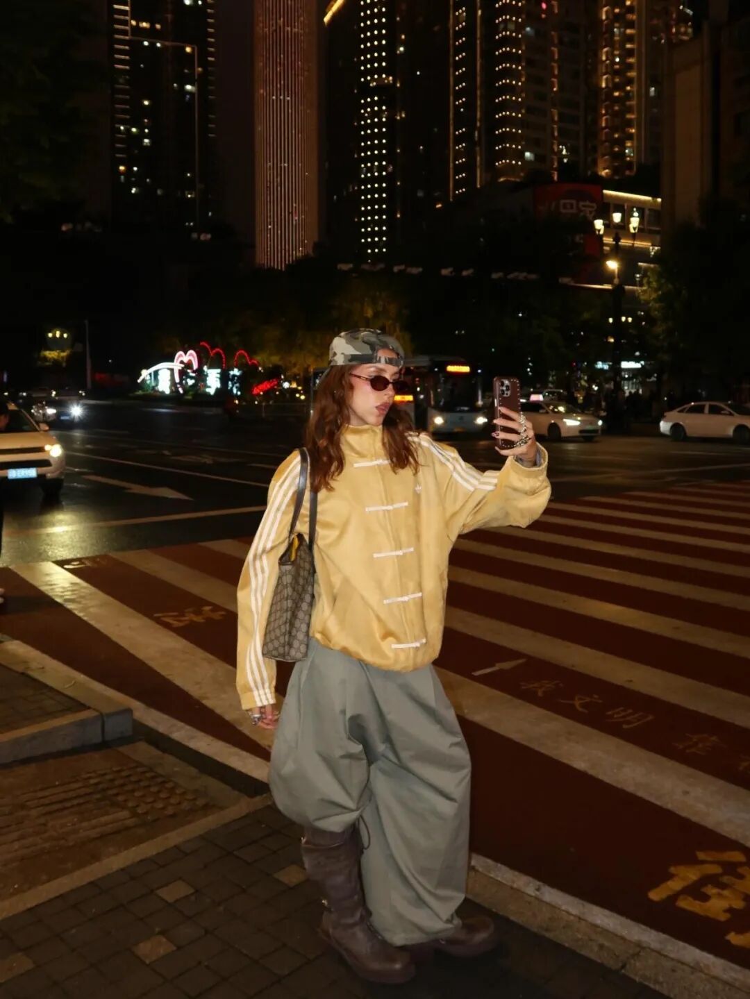 正因如此,它在海外穿搭中 “毫无负担”:不需要知道什么是汉服、什么是唐装、什么是满装,也不必理解盘扣的历史演变。它只是一个 “东方元素视觉触发器” 一般的存在。