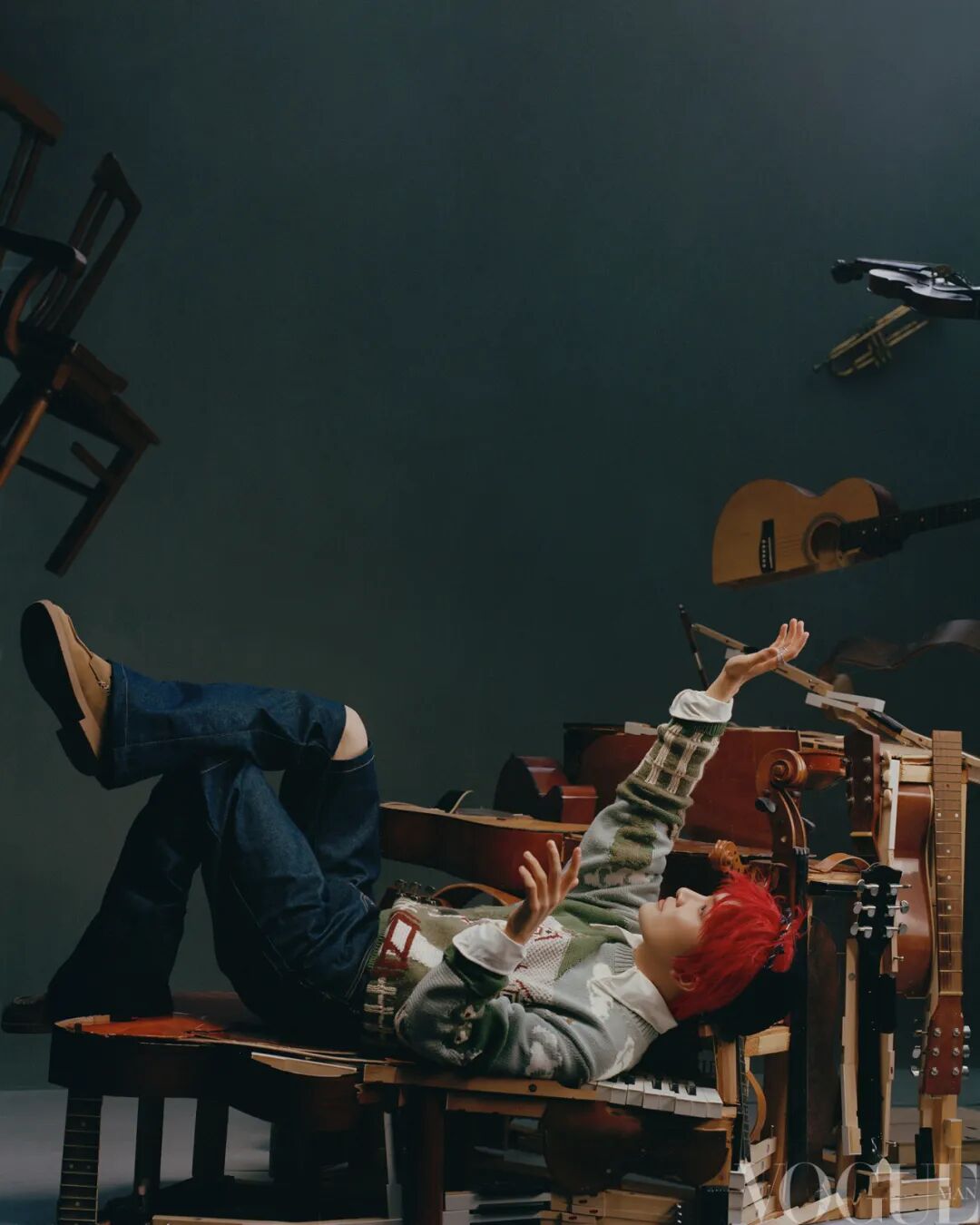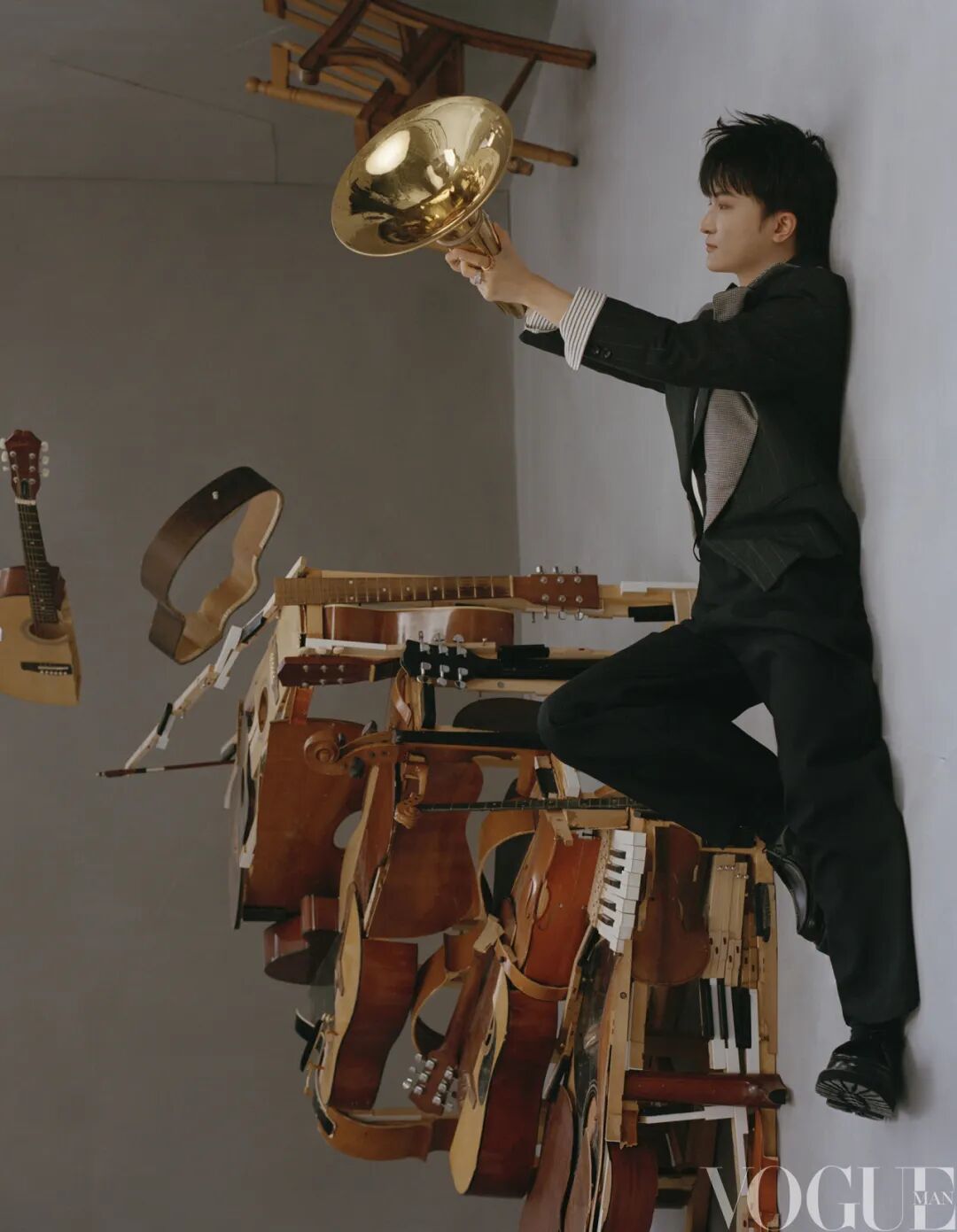 “我今天特意没戴隐形眼镜,就是为了找一种任人操控的感觉!”周深笑说。即便需要经常面对舞台镜头,拍照仍让他感觉是件挺难的事,“我发现视力模糊看不清楚的时候,听力也会变差,好像整个世界跟你隔了一层玻璃。这样拍照,我会更自在随意一些,就不会刻意去摆我那固定的四五个Pose了。”出道11年,周深一直在以自己的方式保有那个有些局促却足够真实的自己,那是他恒定不变的温度。透过这层温度,听者在他的声音与演绎里看世情、看人性,看充满画面感和叙事感的故事。