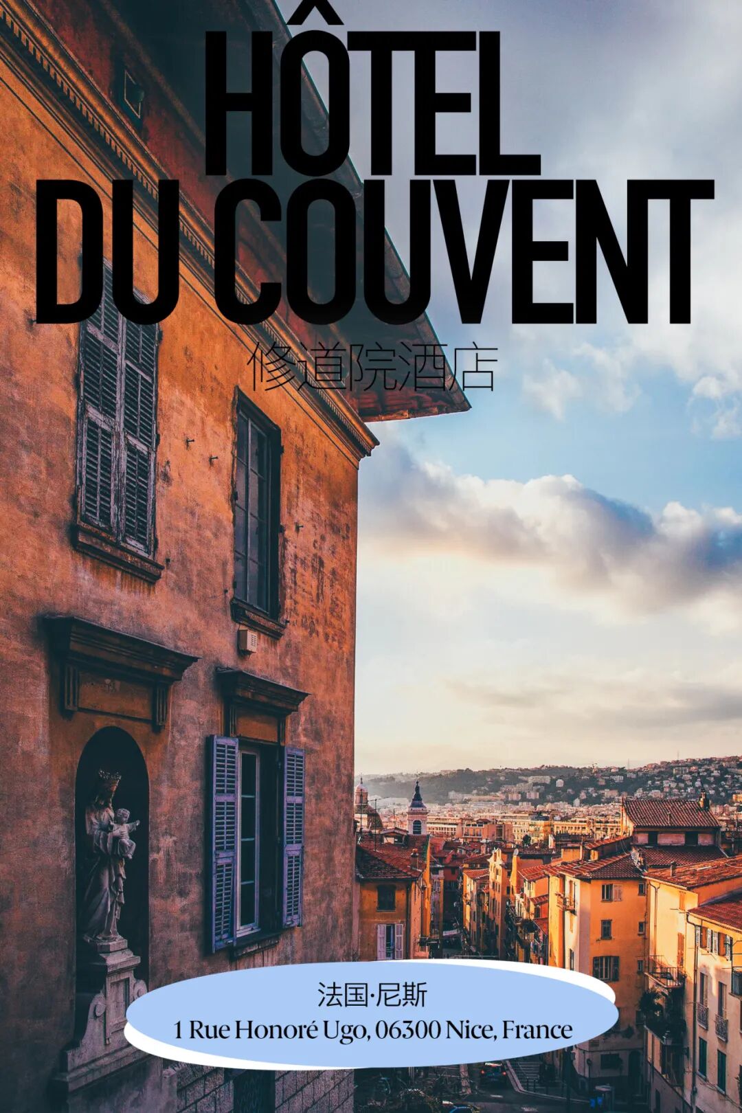 Hôtel du Couvent 坐落在尼斯老城的高处,由一座 17 世纪的修道院改建而成,既贴近城市生活,又与喧闹保持着距离。酒店外便是狭窄起伏的老城街道,咖啡馆、小型市集和社区小店散落其间,清晨就能听见教堂的钟声。向下步行不远,就是通往海边的路线,城市、社区与地中海在这里自然地衔接。