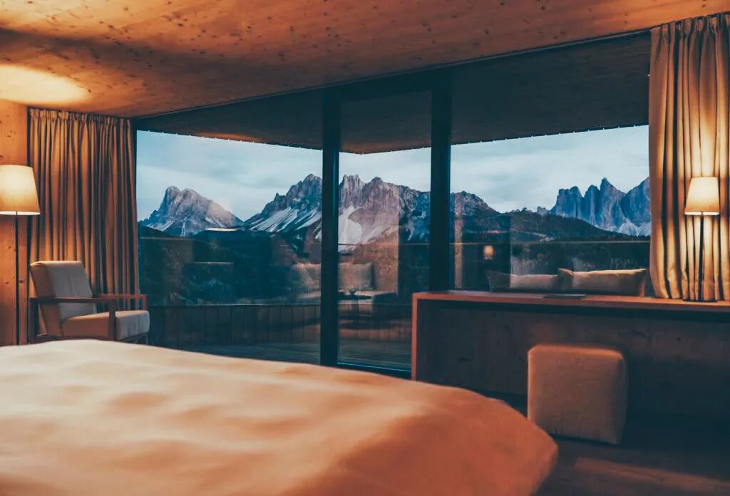 这是把自然之美带进奢华住宿体验的山间秘境。Forestis Dolomites 坐落在意大利南蒂罗尔的高山林线之上,四周被多洛米蒂的群峰环绕,视野开阔而安静。清晨,薄雾在山谷间缓缓散开,傍晚,岩壁在夕阳下呈现出柔和的暖色,夜晚则只剩星空与山影,让人自然地放慢节奏。