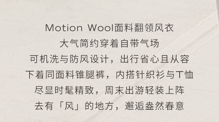 摘要:探索更多Motion Wool系列单品,随心搭配,以兼顾时尚与实用的春日风尚,从容启程,随心奔赴多元春日场景