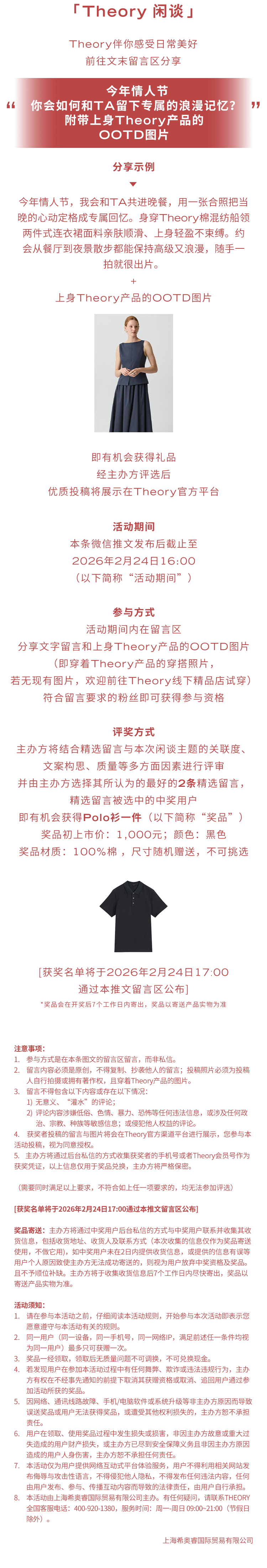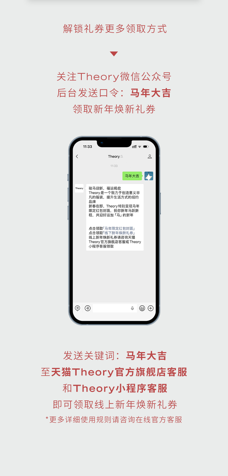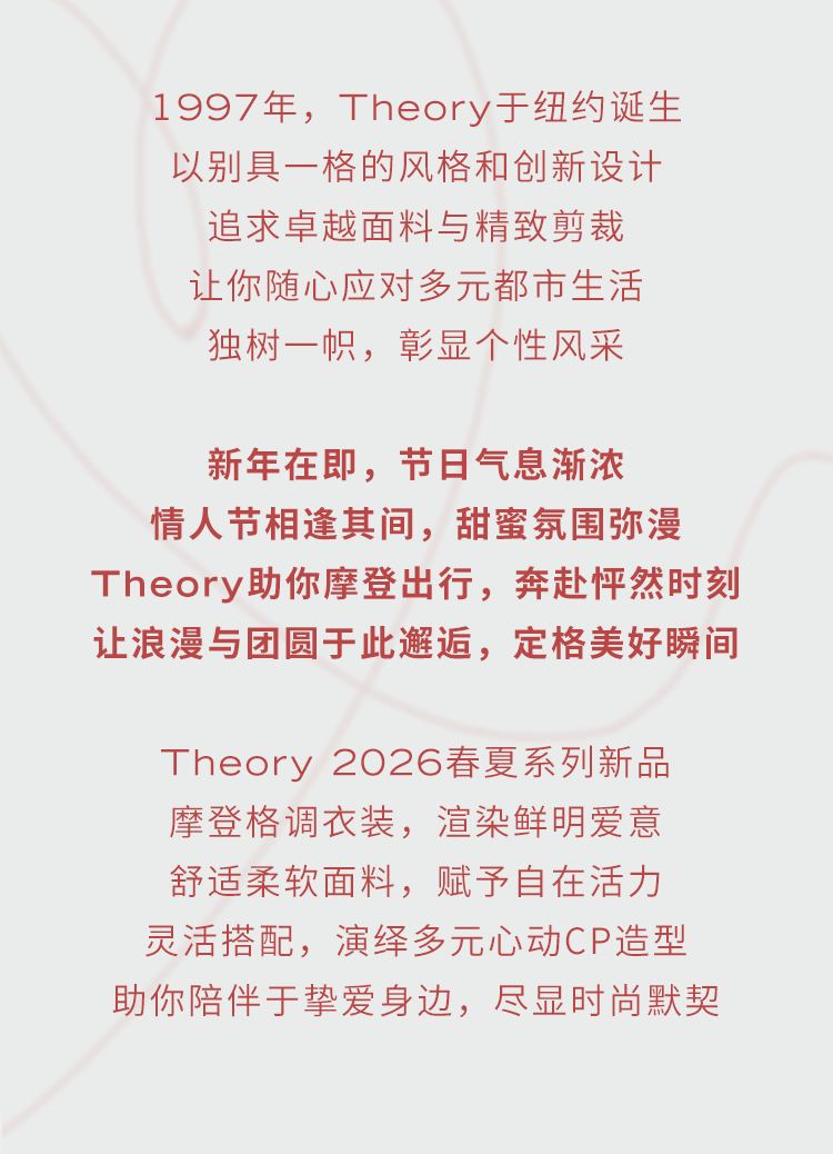 摘要:探索Theory 2026春夏系列,解锁同频CP穿搭,以纽约摩登造型,从容应对亲友欢聚与约会场合,沉浸双节美好氛围