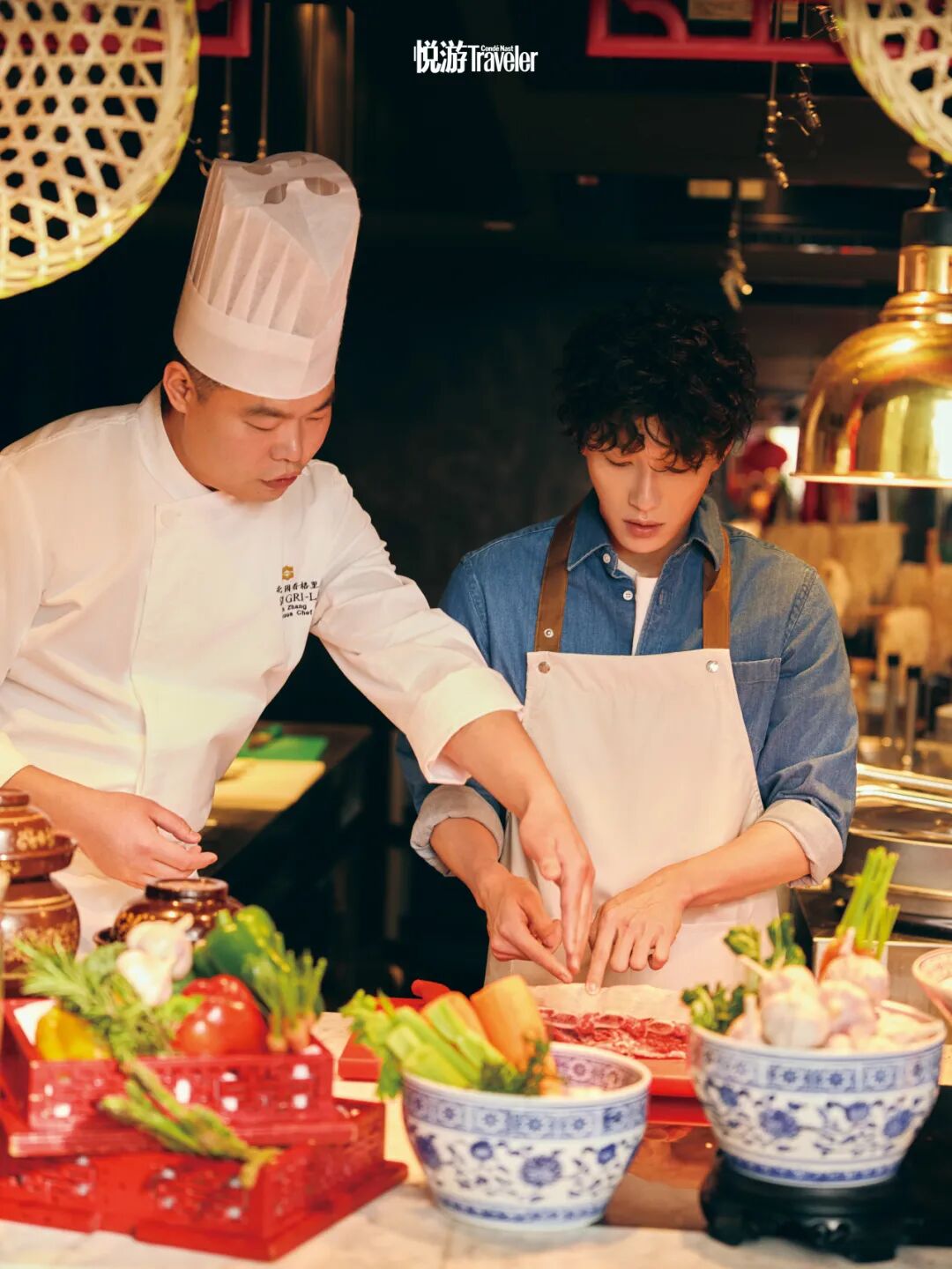 在首钢园香格里拉,他与行政副主厨学习烹制红炉烤牛肋排。炙热的炉火在炉中跳动,翻面、炙烤、收汁,每一步都讲究分寸与耐心。食物的香气在空间里慢慢散开,华丽的技巧、繁复的调味,敌不过朴素的火候与心意。