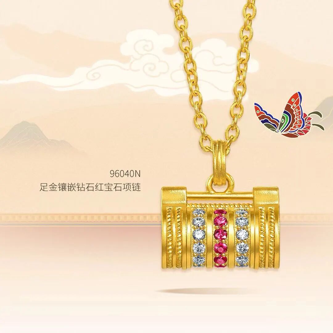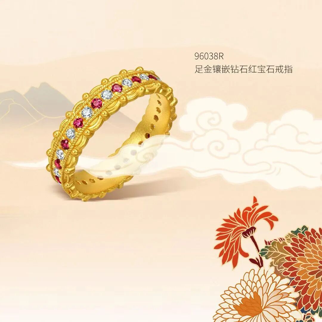 足金为基,精镶钻石与红宝石,