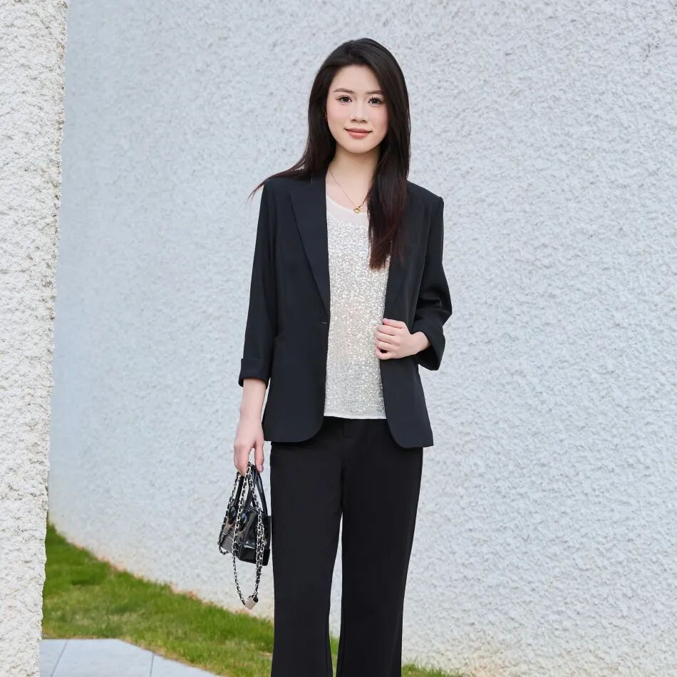 翻领的棱角衬出清醒心智,在开工会议、客户对接中,既守住职场礼节,又藏住不张扬的优雅风骨。