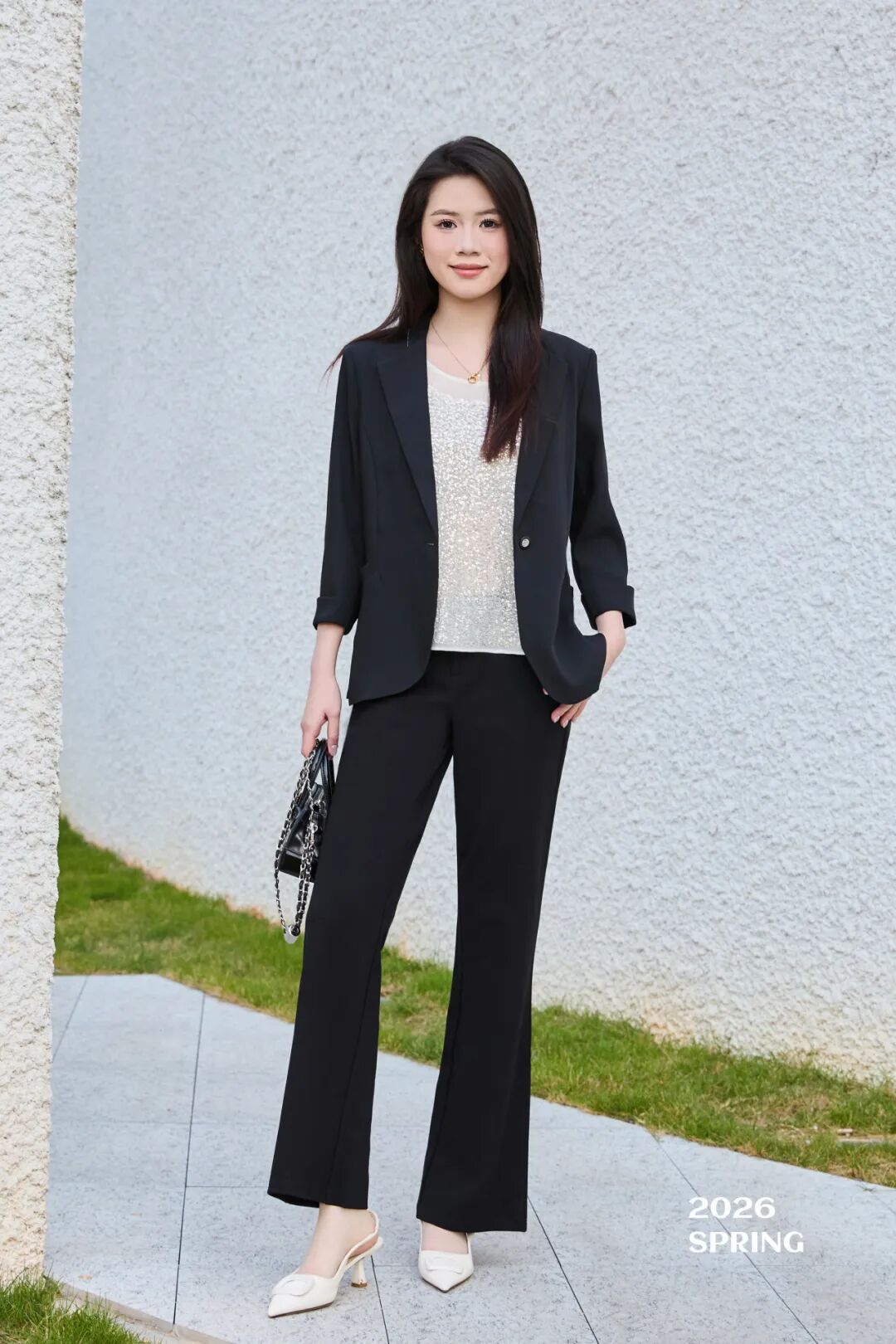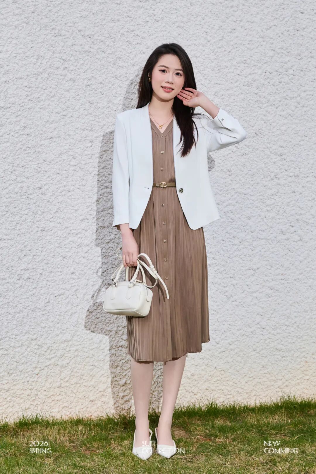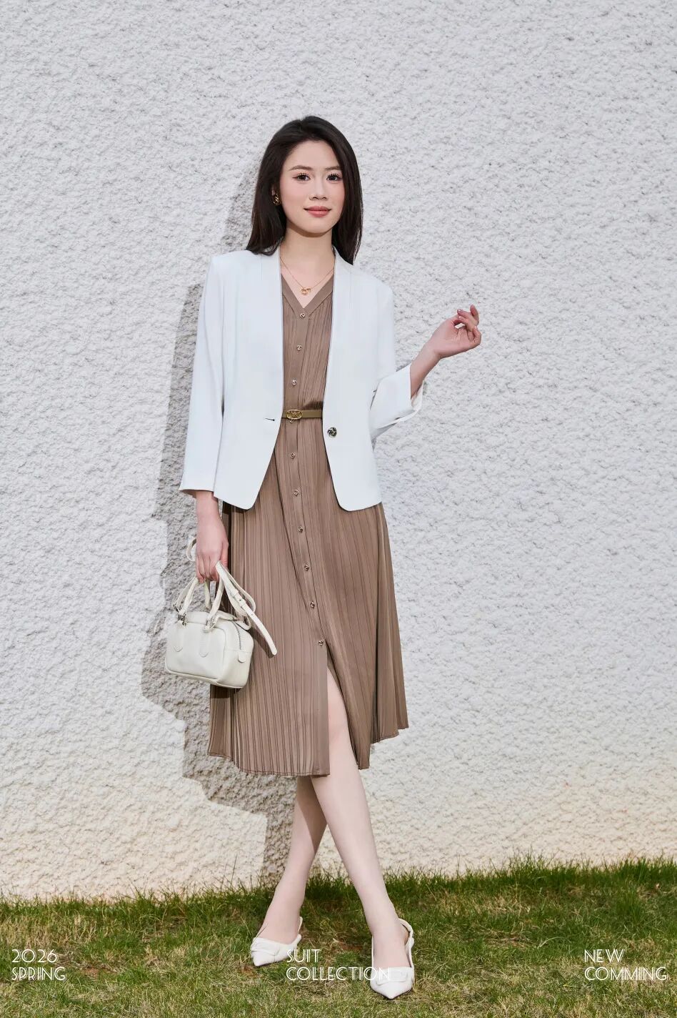 西装与连衣裙相融,柔中带韧,适配日常通勤与轻度商务场景,让开工后的每一天都自带温婉气场。