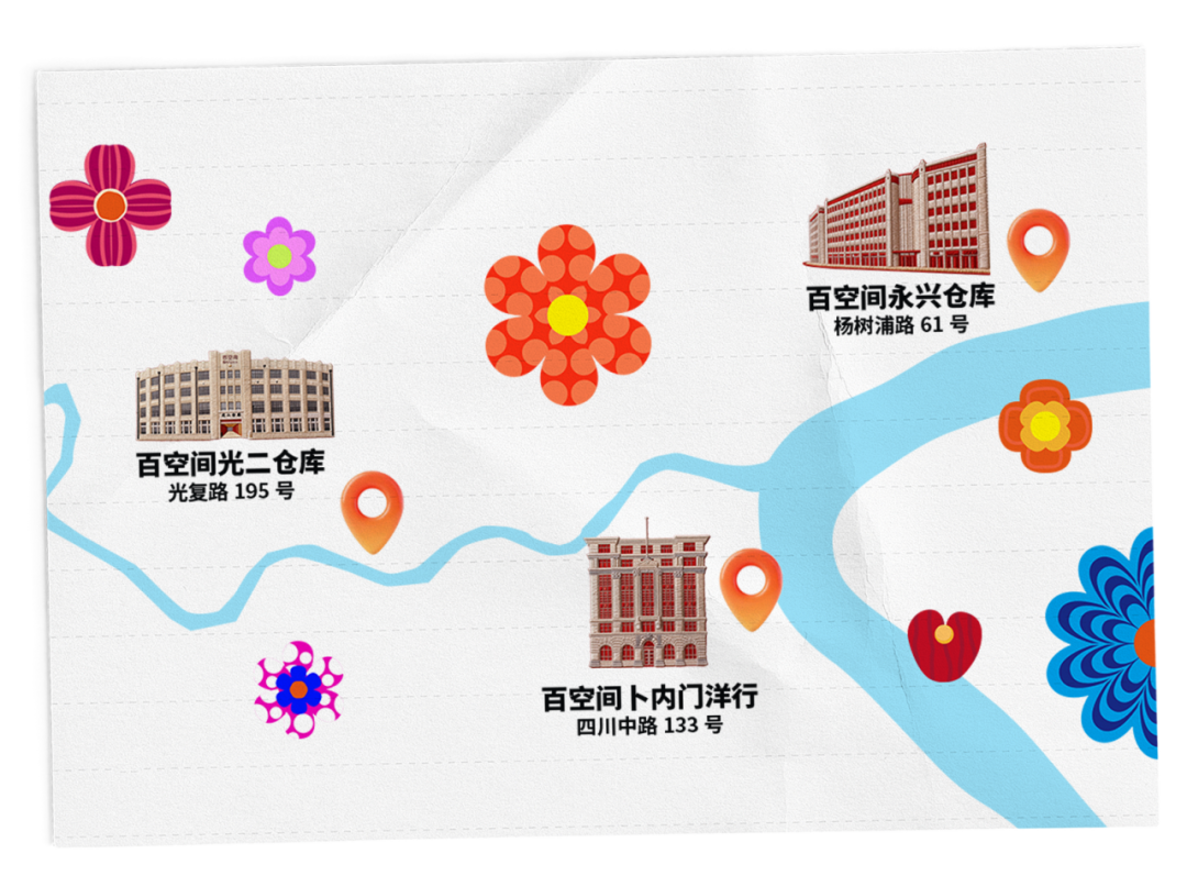 百空间永兴仓库:虹口区杨树浦路61号(地铁4号线杨树浦路站、12号线提篮桥站)