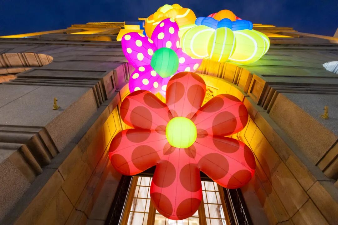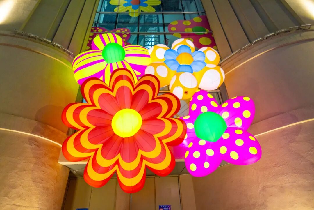 由百联资控策划的三组新春美陈,分别“盛开”于百空间卜内门洋行、永兴仓库与光二仓库。它们并非真实花卉,而是以“花”为意象的大型艺术装置,以鲜明的色彩与充满活力的形态,为这些静默的历史空间注入节日温度,也自然串起一条可漫步、可阅读、可打卡的城市文化动线。