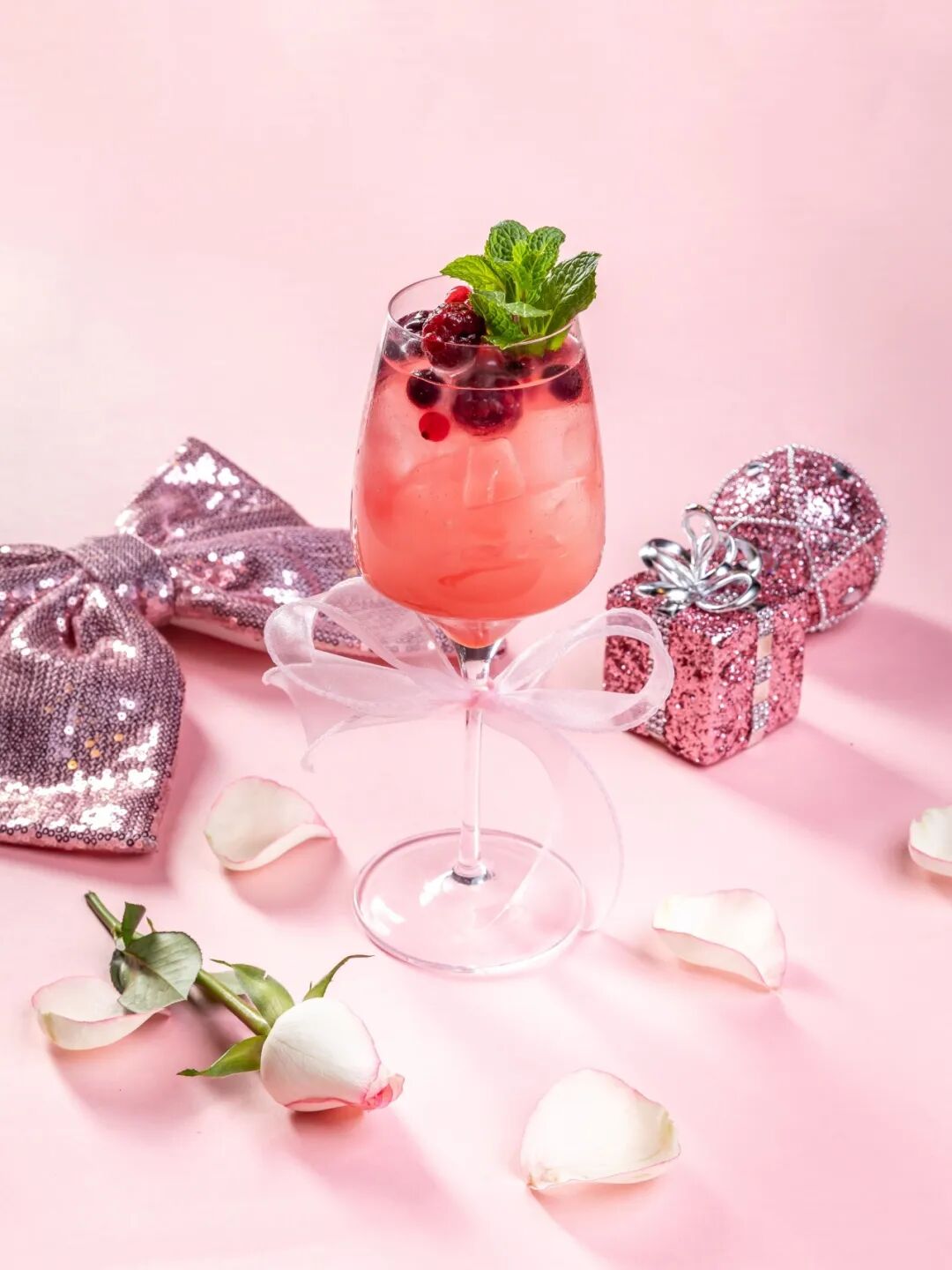 Sweet lychee meets fragrant elderflower, lightly tinged with the bright tartness of pomegranate; the bubbles in the glass evoke the thrill of first love, and affection rises slowly with the pink bubble.