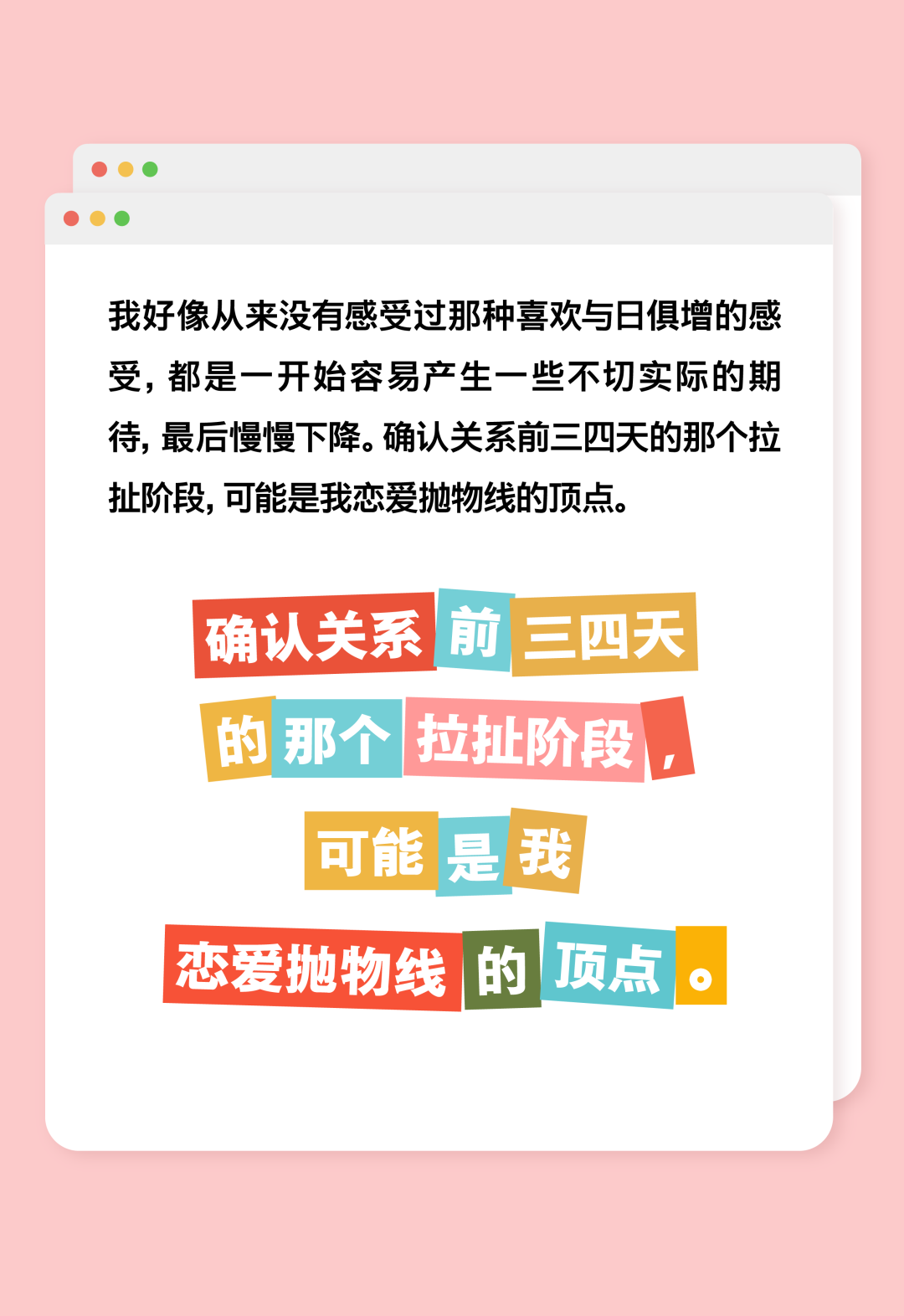 摘要:确认关系前三四天的拉扯阶段,可能是我恋爱抛物线的顶点。