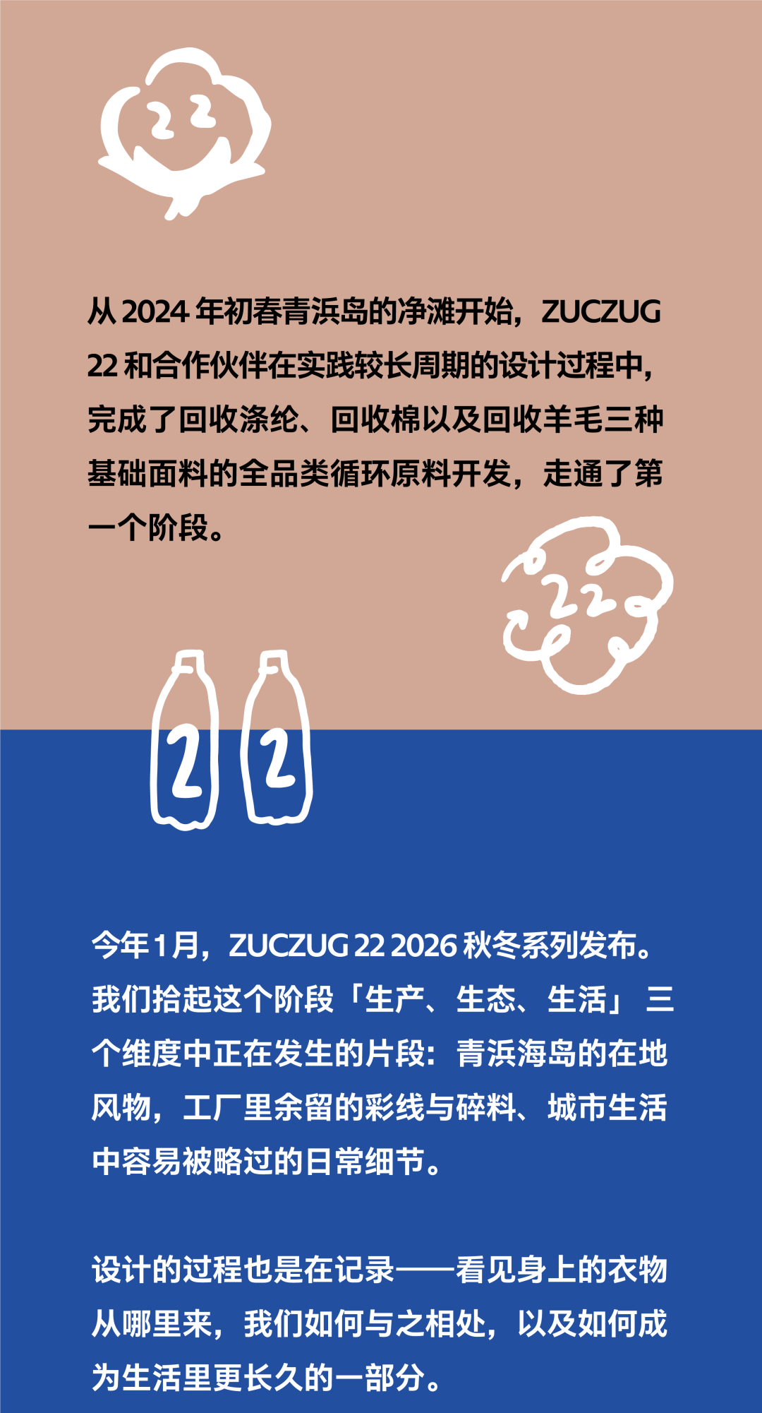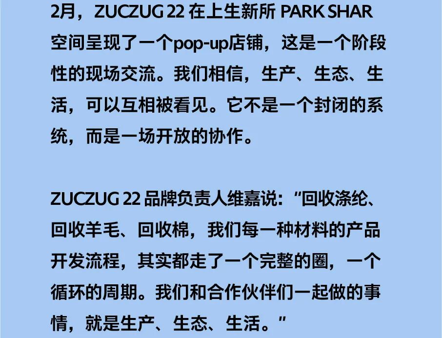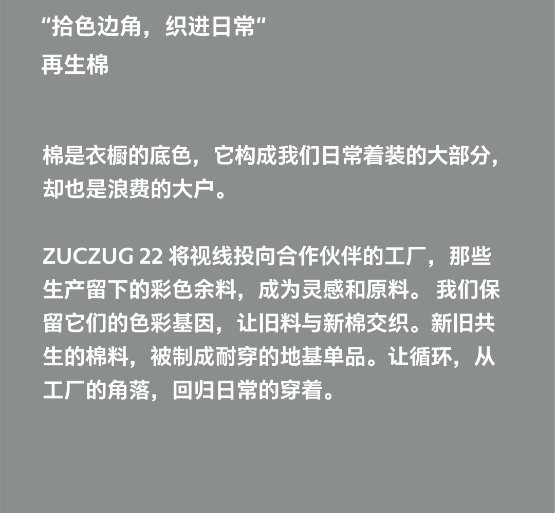 22 较长周期产品是ZUCZUG 的一个可持续实践项目,旨在赋予产品长久的生命力。透过设计手段链接关心环境的朋友们、生产者、使用者,一起重新探索物品的价值和意义,并践行场域友好。