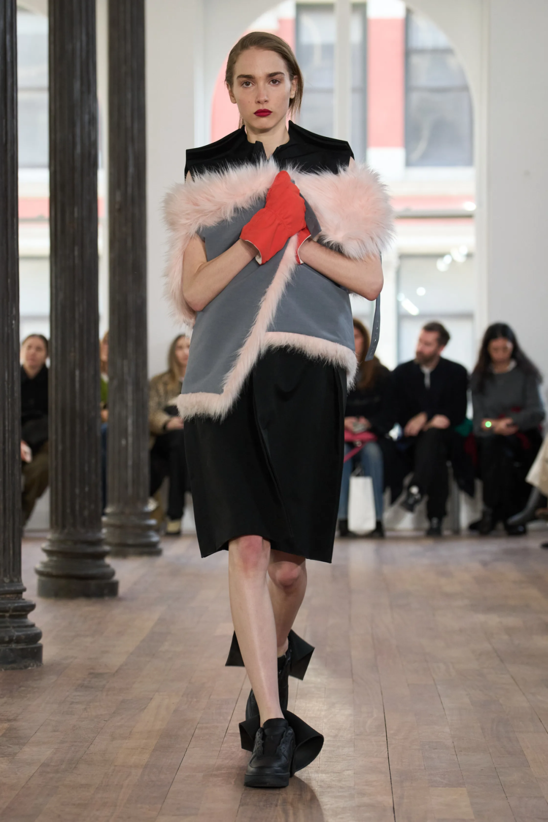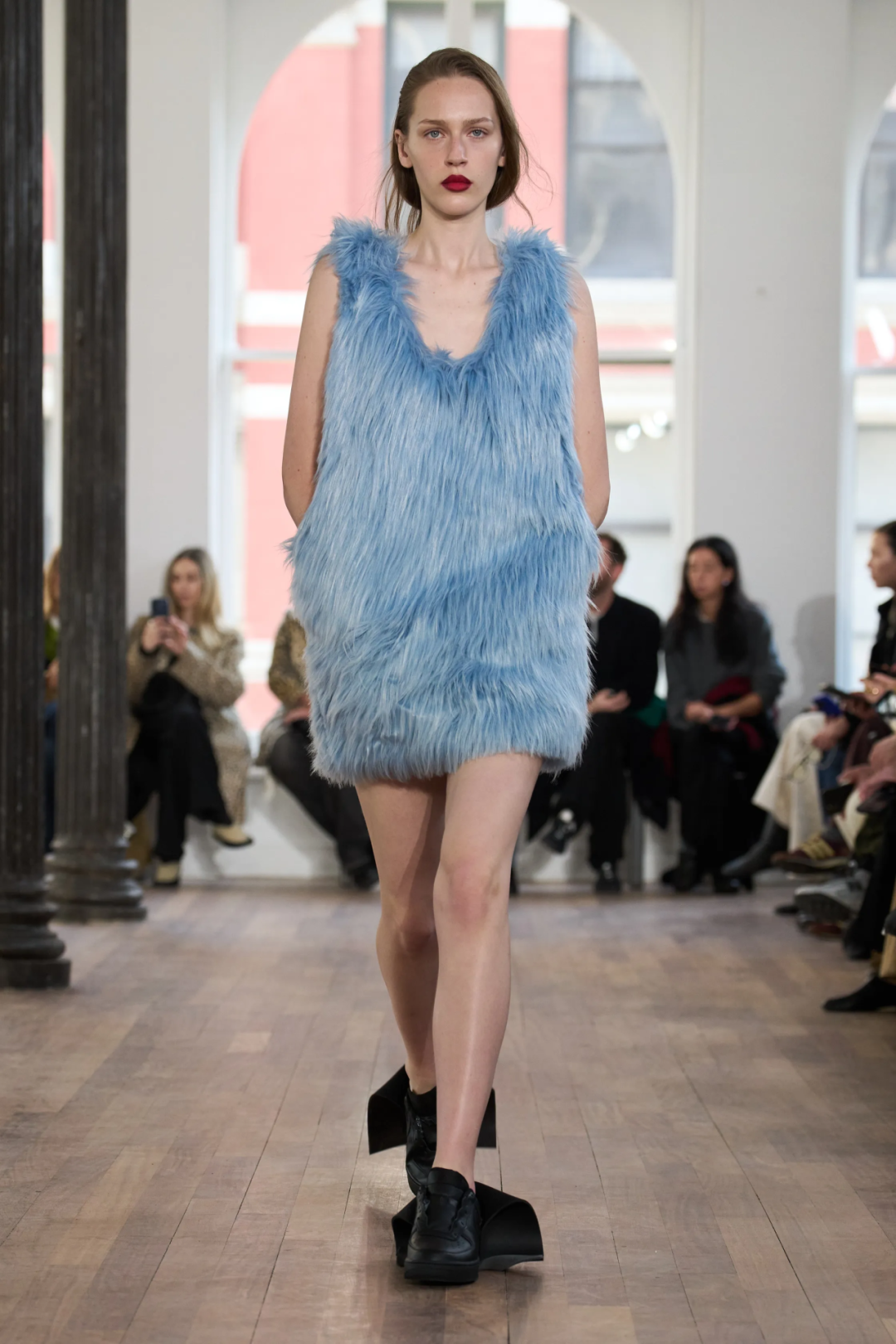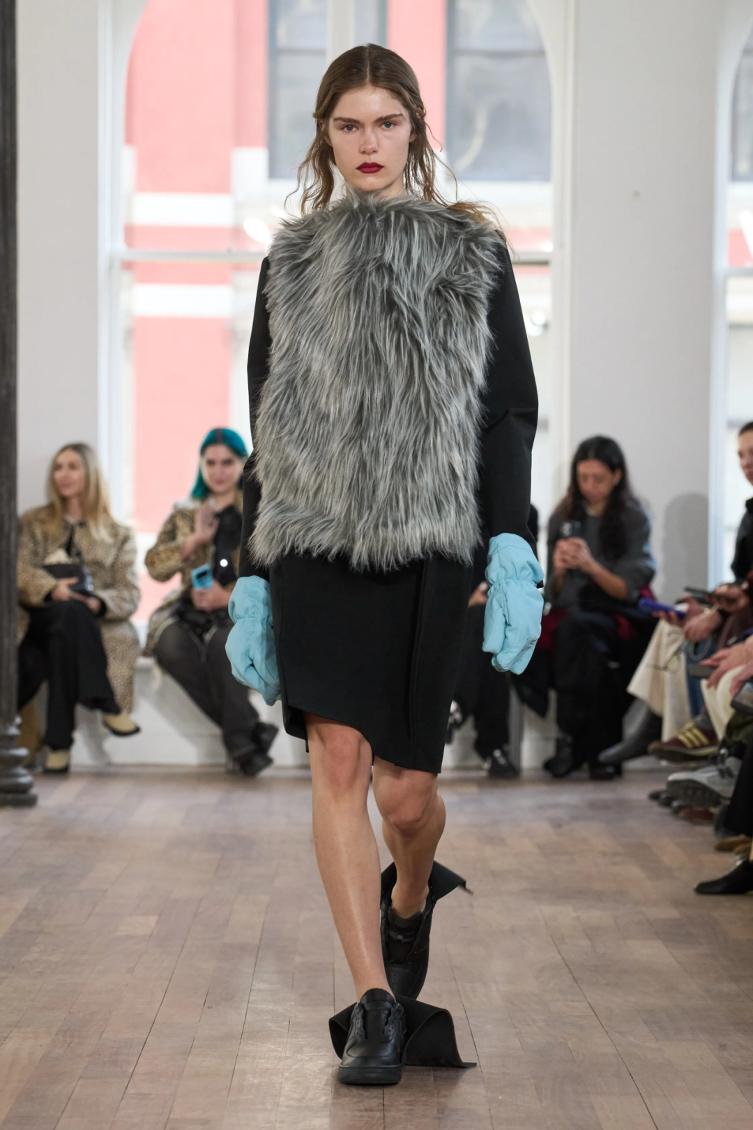 本季,Zane的设计灵感来源于科幻电影《皮囊之下》,通过将运动面料的平裁和撞色拼接,以及融入人造皮草元素,实现结构、色彩和质感上的新尝试,既呈现出一种完美主义的疏离感,又在很大程度上考虑到了肢体在服装中灵活伸展的需要,有些甚至像是模特们在拥抱着一枚枕头的既视感,让人忍不住想近距离感受其中的设计巧思,这或许就是Lii可以在短短几年中吸引到诸多关注的原因。在当今时尚界,想要在短时间内建立自己的风格语言并不容易,Lii做到了,而且潜力无限。