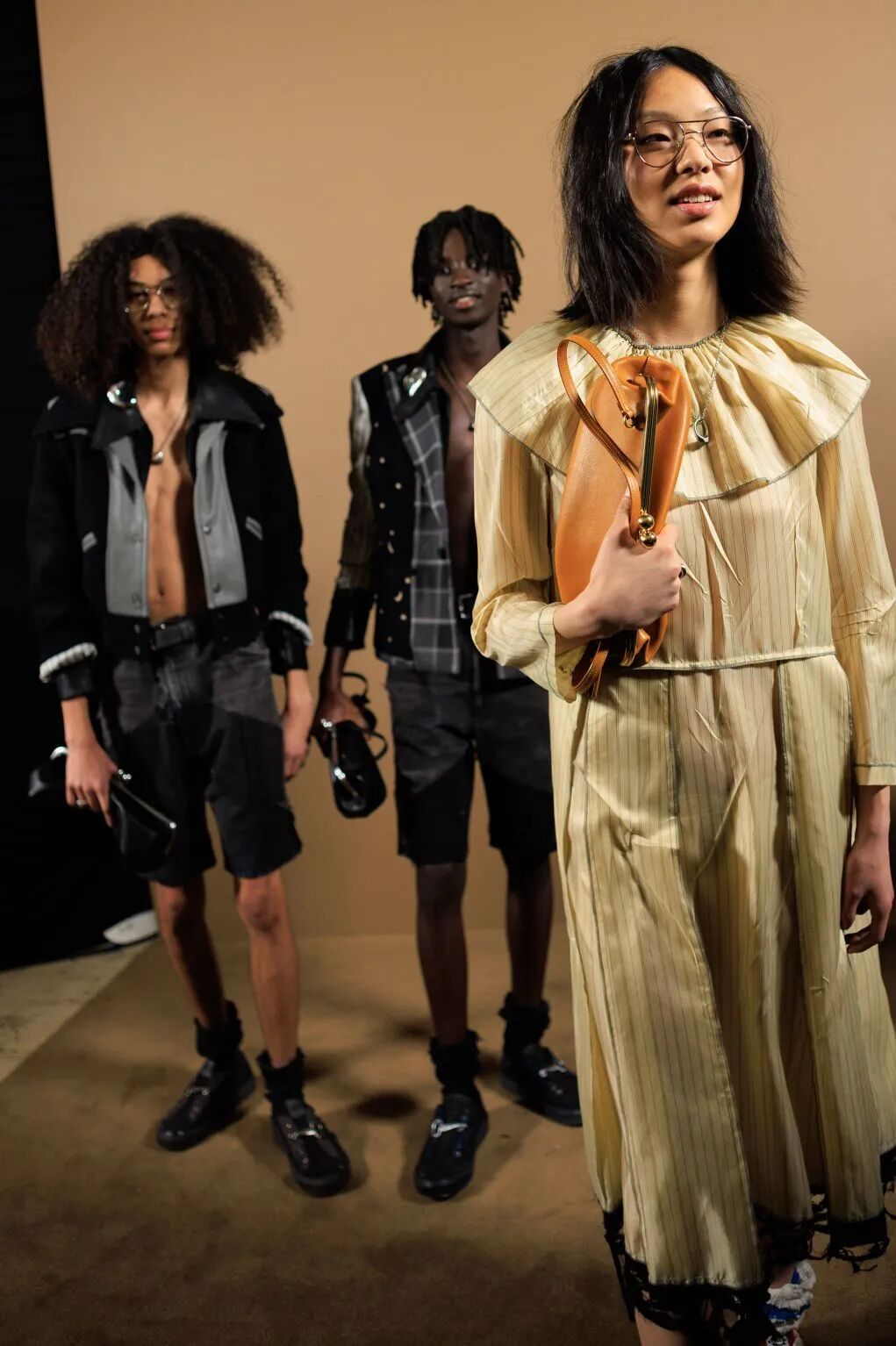 当我们还在将“青年文化”的面貌等同于缤纷色彩和阳光活力时,Coach创意总监Stuart Vevers决定反其道而行之,开场的阴郁氛围似乎带我们回到了某种默片电影时代的质感,“本季从黑白电影风格的复古色调逐步过渡到鲜明、高饱和度的色彩语言,该系列希望通过传递乐观精神,陪伴新一代开启人生的全新冒险。”Vevers解释道。