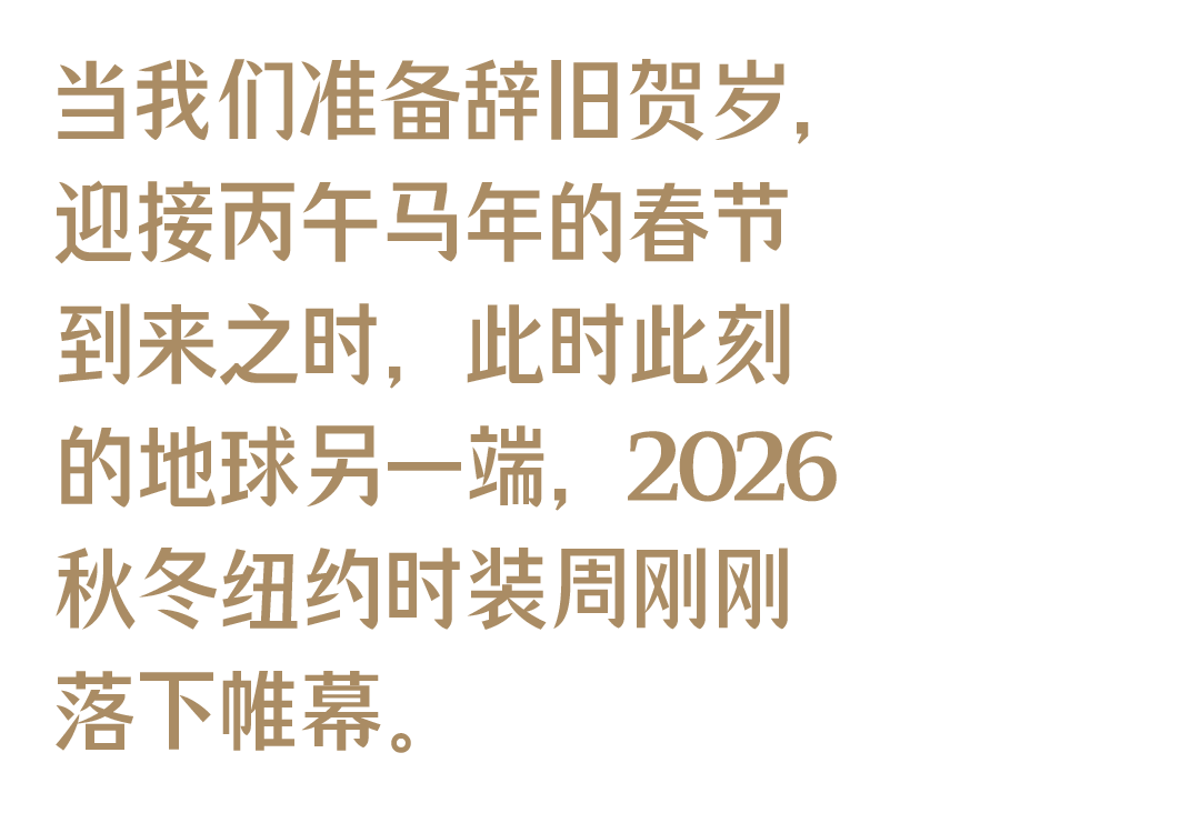 经过了数季的持续动荡,纽约时装周迎来一场真正意义上的“复苏”:我们不仅能看到诸多熟悉的面孔回归,也见证了一代新兴设计师品牌成为中流砥柱。更重要的是,创作者们集体呈现出的积极面貌,在作品中表现得淋漓尽致——不再是小心翼翼的试探,而是真正勇敢地走出既有的框架,为品牌的未来发掘崭新的可能性。从某种程度上说,本季纽约时装周的出色表现,为2026秋冬时装季开了个好头,希望这只是一个开始。
