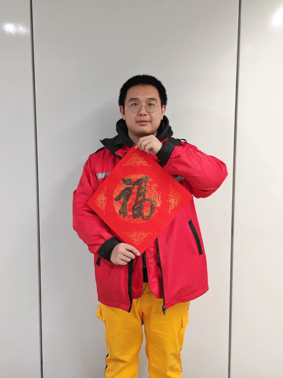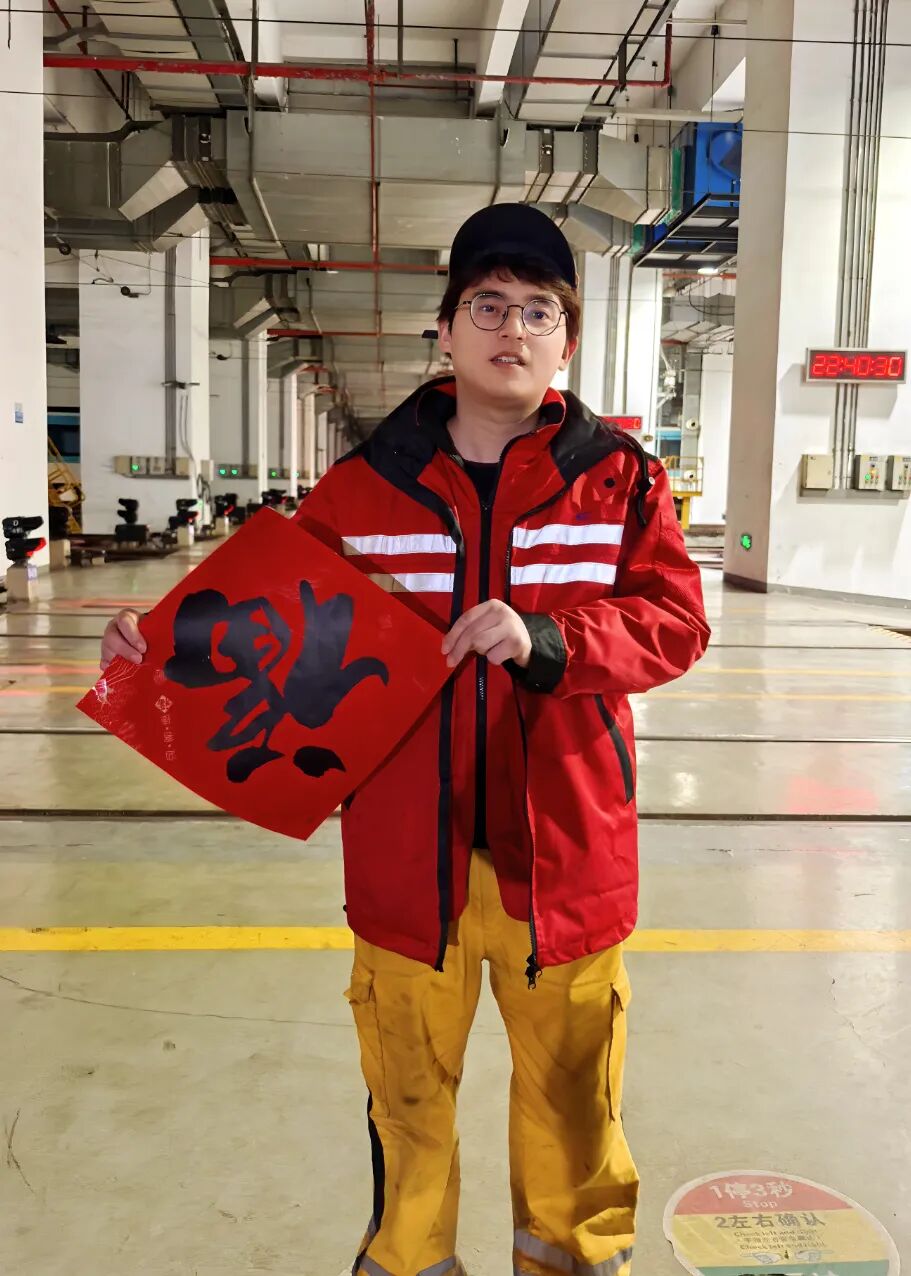 我是码头值班工程师王嘉懿,新春佳节,我在码头守岁。春江水暖总有这样安静的夜,我们养精蓄锐,待开工鸣笛,再把那钢铁臂膀,舞动成最飒的春风。愿您新岁马力全开,乘风破浪,航程万里皆安澜!