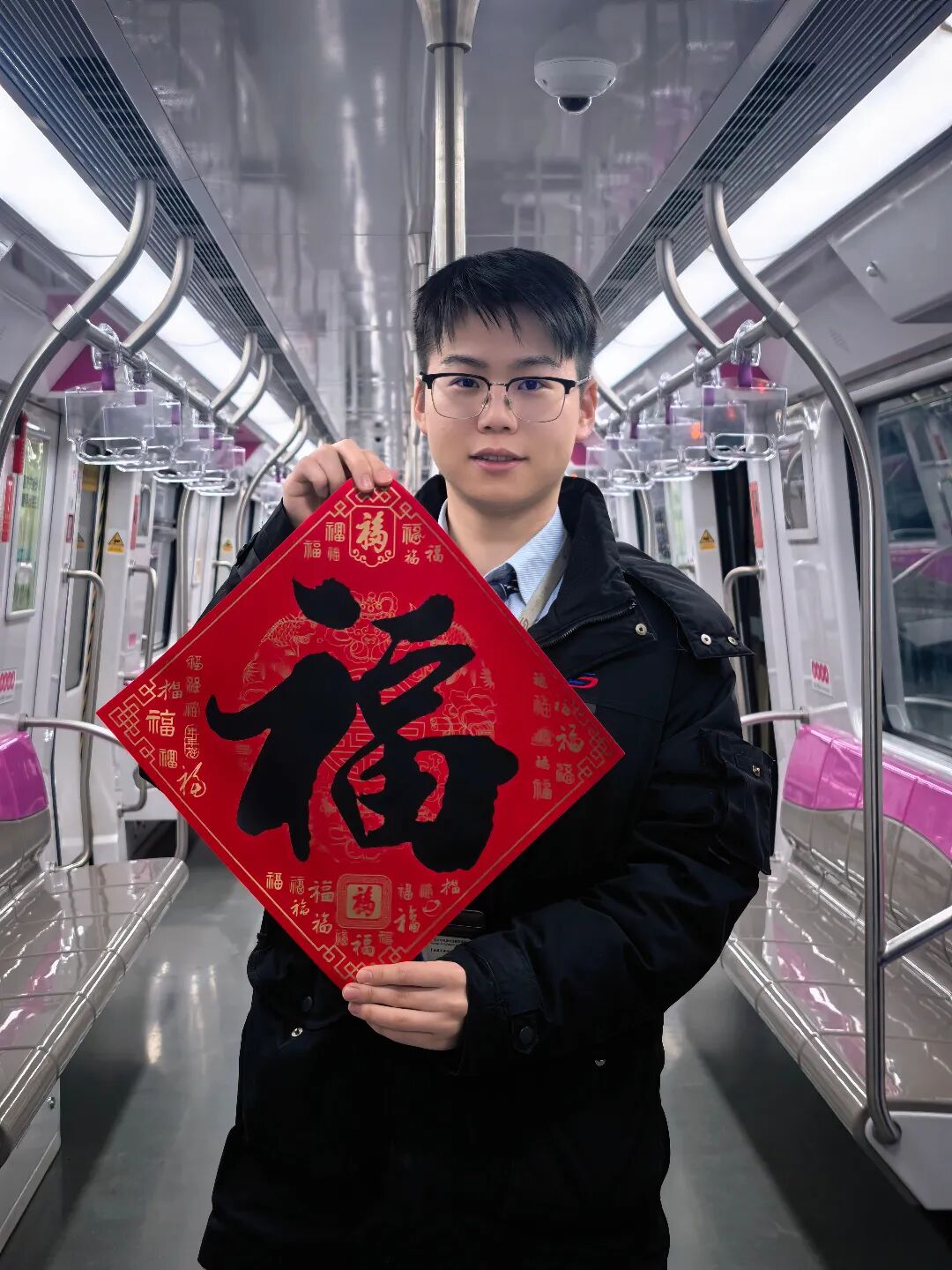 我是地铁电客车司机徐泽,我的春节在列车上度过,“钢铁骏马”穿城而过,载着无数的梦想与期盼,新年伊始,我将用专注继续点亮城市流动的血脉,马年新春,我在轨道上为您护航,祝您新的一年策马扬鞭,马到成功,每一站都是幸福的抵达。