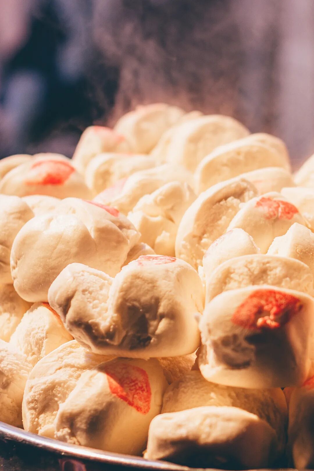 走进蒸馍街,看着馍馍上红色的“保宁”字样在雾气中隐现,便想起了儿时,也是在过年,吵着让外婆将那同样的一抹红点在额头,在那个物质欠缺的年代,这满足一个小孩想在新年拥有漂亮的愿望。
