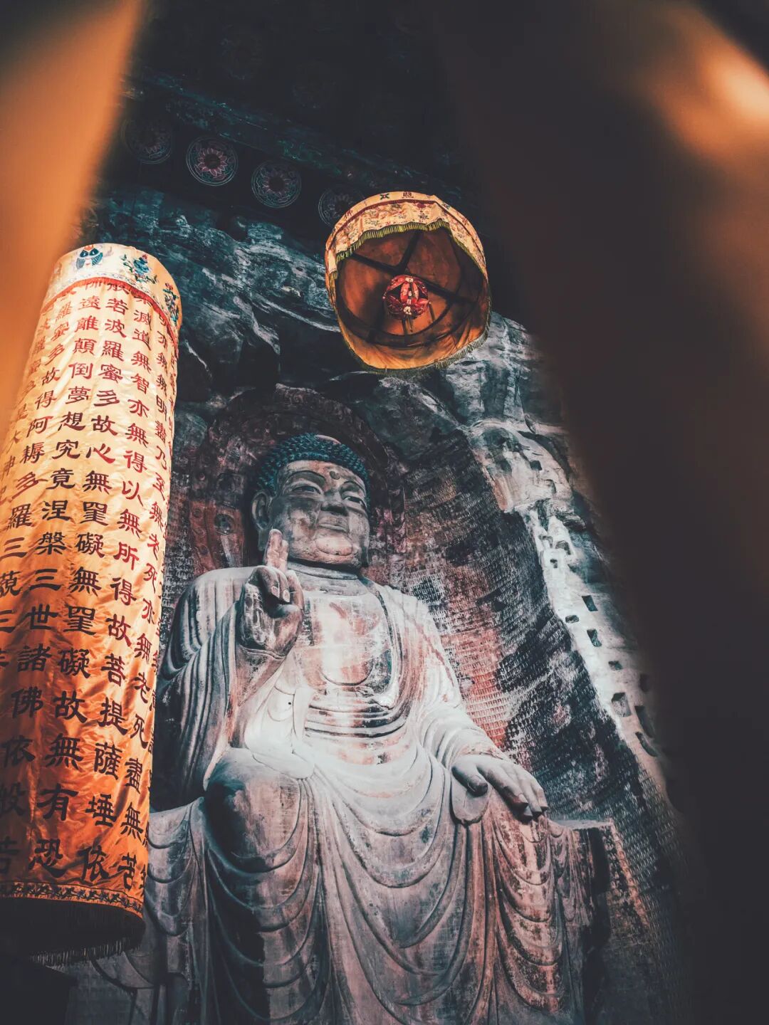 但也正是这种时间的力量,更显其庄严宏伟,登临二楼,可细细端详大佛温柔的注视和笑颜。