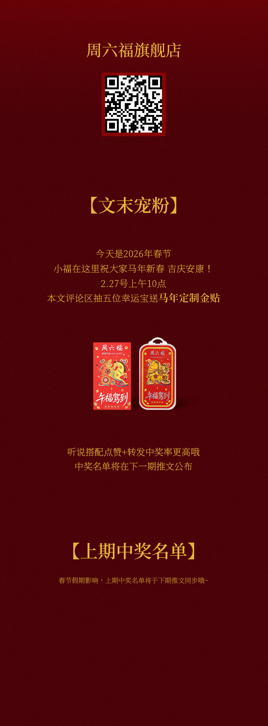 文章内容来源于公众号:周六福ZHOULIUFU,点此可查看原文,内容版权归相关企业所有,本网站仅供交流学习。若涉及版权问题或存在侵权情况,请及时与我们联系,我们将第一时间进行删除处理。
