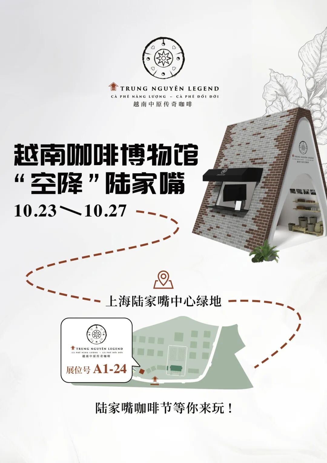 10月23-27日,越南中原传奇咖啡重磅回归陆家嘴国际咖啡节,为所有咖啡爱好者打造耳目一新的体验,带你沉浸式体验纯正的“咖啡道”!