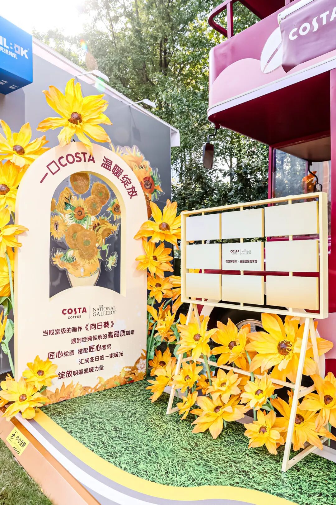 除此之外,还有其他包袋、手机支架、书签和COSTA产品,同时还联名英国国家美术馆,带来了向日葵限定打卡点,一口COSTA,温暖绽放!