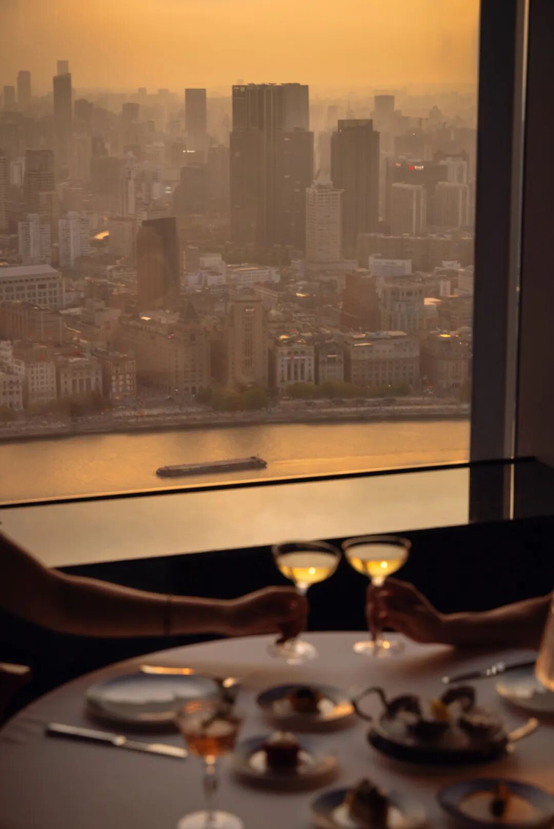 于云端畅享鎏光跃金, 绽放摩登风华的璀璨光影。伴随外滩美景与壮美天际线, 畅享现开生蚝及丽思珍藏香槟。礼赞往昔优雅,沉浸此刻迷人时光。畅享美食欢乐时光。