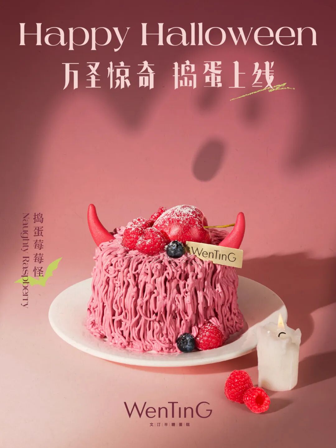 WenTinG 万圣限定新品上线,「捣蛋莓莓怪」惊奇来袭!树莓、蓝莓、海棠果缤纷呈现,柑橘冻和晴王组成的丰富夹层,搞怪外表下也隐藏不住的诱人美味。万圣节一起来捣蛋,Happy Halloween!