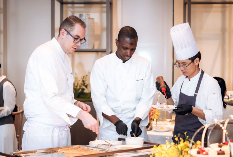 上海浦东香格里拉携手珠宝品牌CIRCLE,以CIRCLE “朱雀”系列珠宝为创作灵感,美食艺术相结合,推出“雀跃云间”主题下午茶及联名鸡尾酒,于翡翠36酒吧和大堂酒廊特别演绎,将奢华与优雅融合,让珍珠在指间游走,在舌尖弥散,摩登与优雅交织。