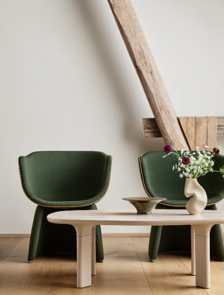 Cecilie Manz 设计的Monolit 座椅是软垫椅的纯粹演绎,极具舒适感,独特的外观造型极具鲜明个性。椅背像一个圆形的保护壳,拥抱着使用者,给与完整的个人空间的感受。
