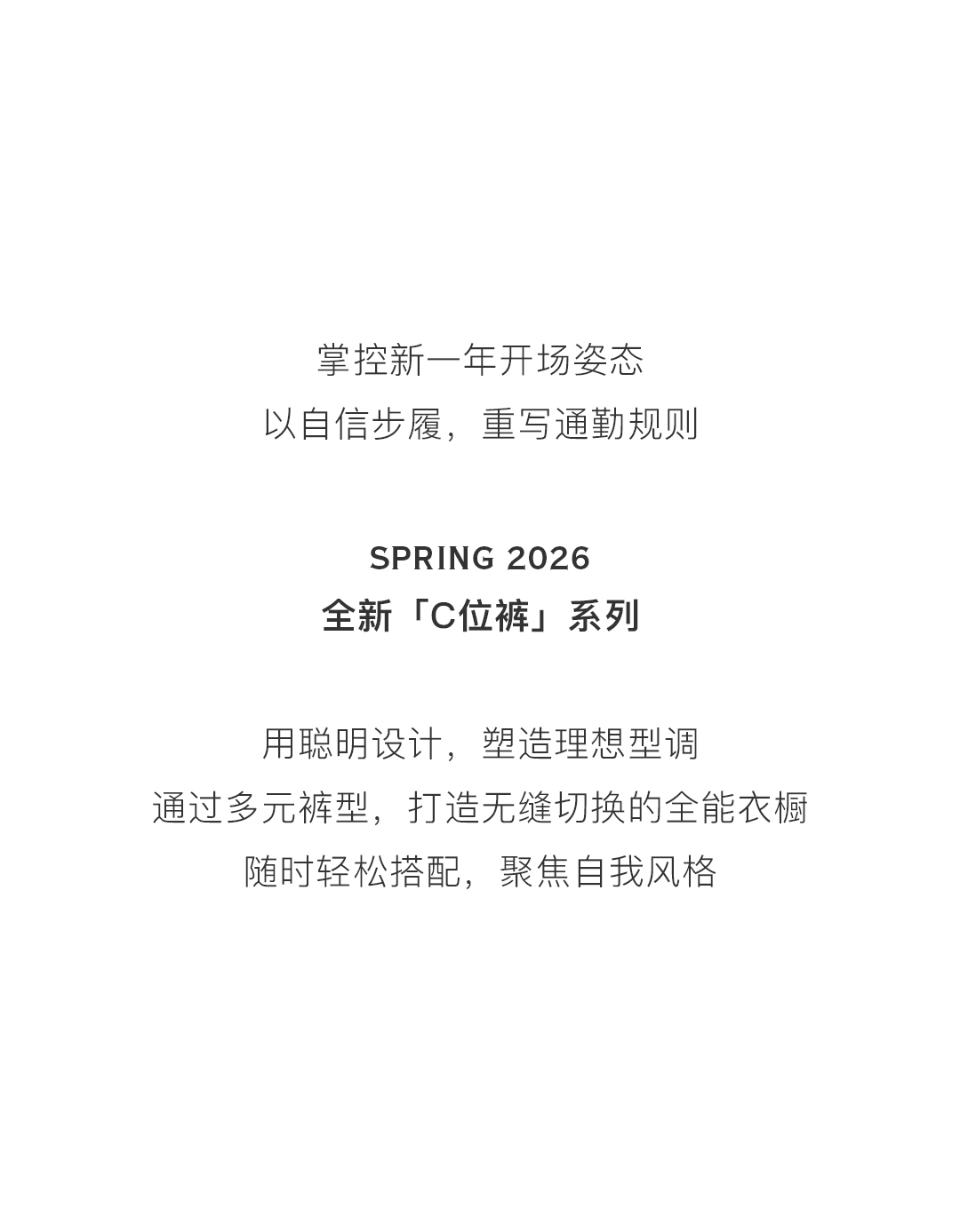 摘要:- 全新C位裤系列,解锁职场最佳状态