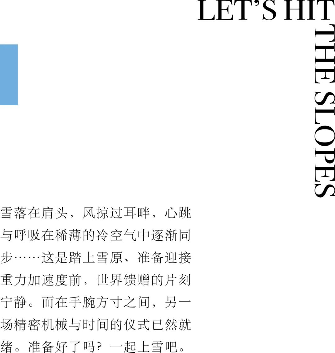 当我们扣紧雪板固定器,或整理好登山行囊,准备投身那片无垠的洁白时,腕间的时计已悄然完成了它的角色转换。它可以是赛场上共享心跳的战友,是荒野中指引生路的信标,也可以是日常生活中,提醒我们内心仍存一片冰雪净土的风格单品。“一起上雪吧”唤醒我们体内那份对纯净、对挑战、对极致之美的本能向往。而腕上那枚陪伴你的时计,便是这段旅程最沉默也最忠实的见证。