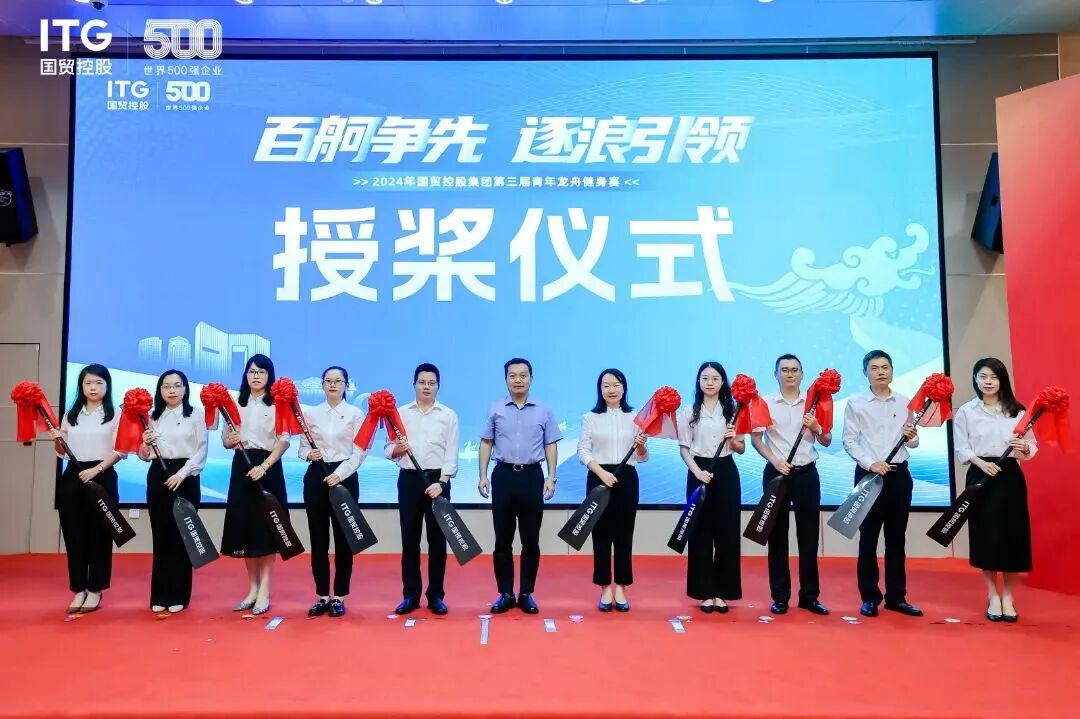 现场还举办了国贸控股集团第三届青年龙舟健身赛开桨仪式,各投资企业参赛战队代表现场抽签决定初赛赛道顺序,并由国贸控股集团党委副书记马陈华向各战队代表授桨。与会人员共同观看了往届健身赛的主题先导片,见证国贸青年们在往届比赛中的拼搏与奋进。