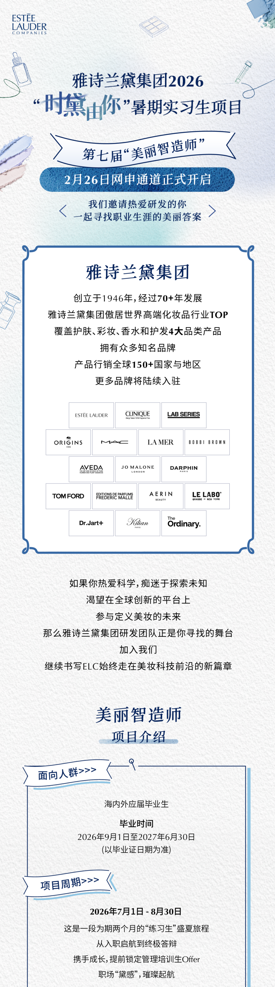 文章内容来源于公众号:雅诗兰黛集团招聘,点此可查看原文,内容版权归相关企业所有,本网站仅供交流学习。若涉及版权问题或存在侵权情况,请及时与我们联系,我们将第一时间进行删除处理。