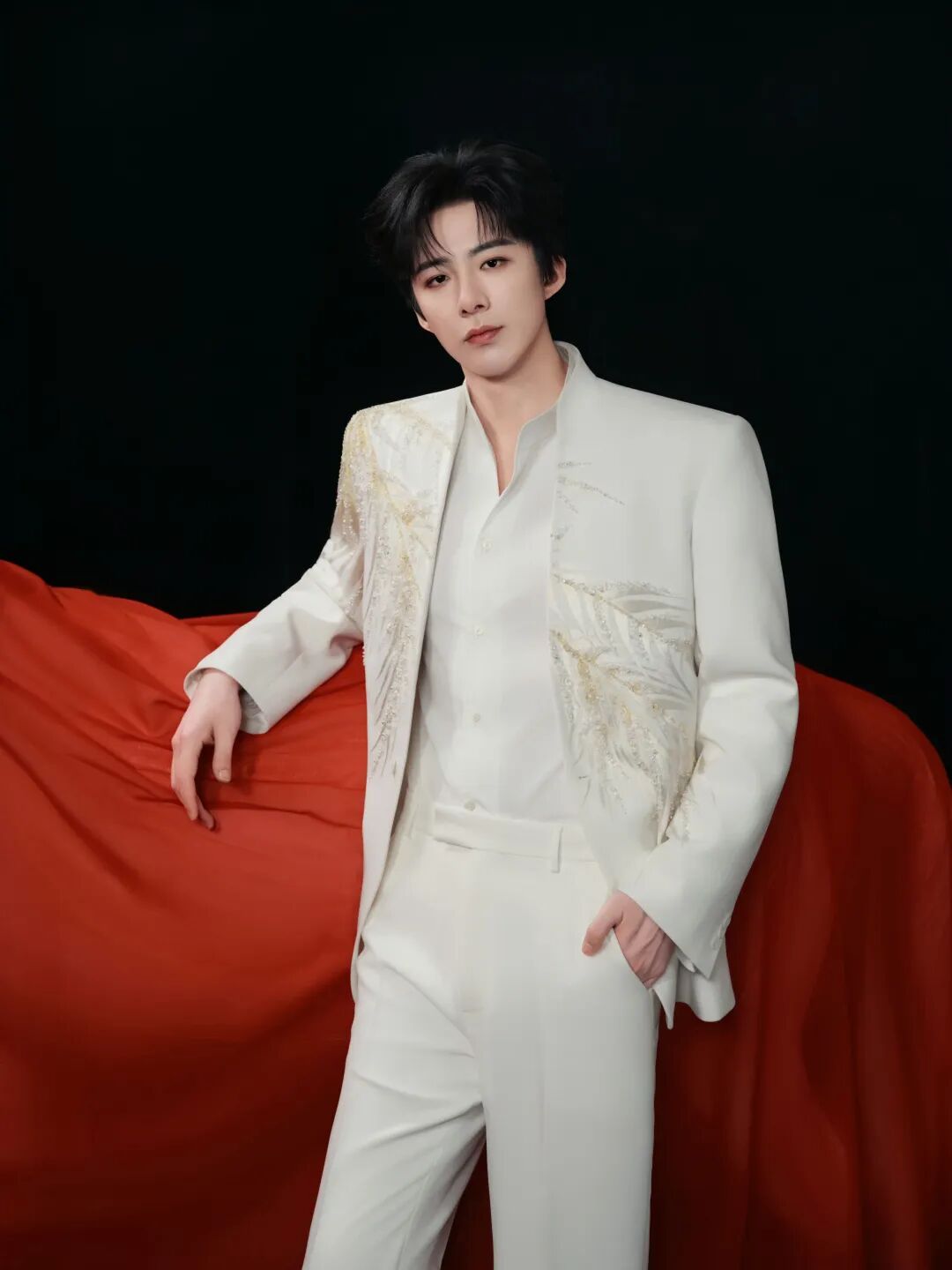刘宇宁一袭白色新中式西装,将东方禅意与西方剪裁融于一身,衣袂间的竹叶刺绣为整体注入几分清雅脱俗的风骨。