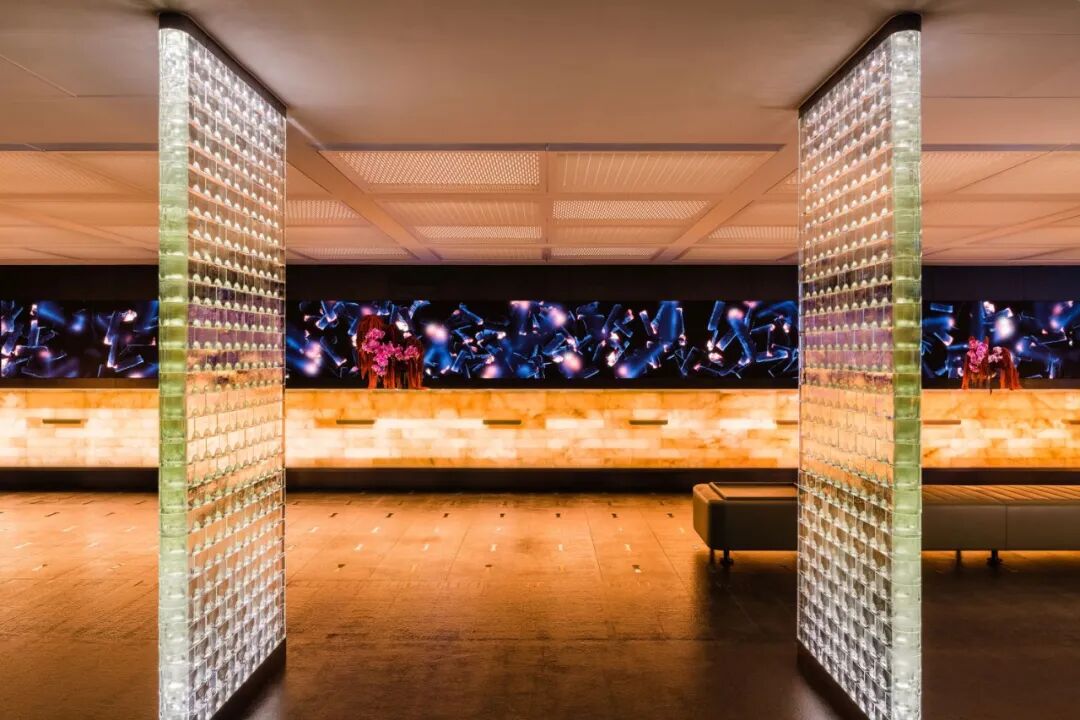 室内以流畅的黑色花岗岩地面、灵动的竖向玻璃砖隔断,以及可眺望海港全景的三层通高落地窗,一进门便能让人感受到平和舒缓的氛围。