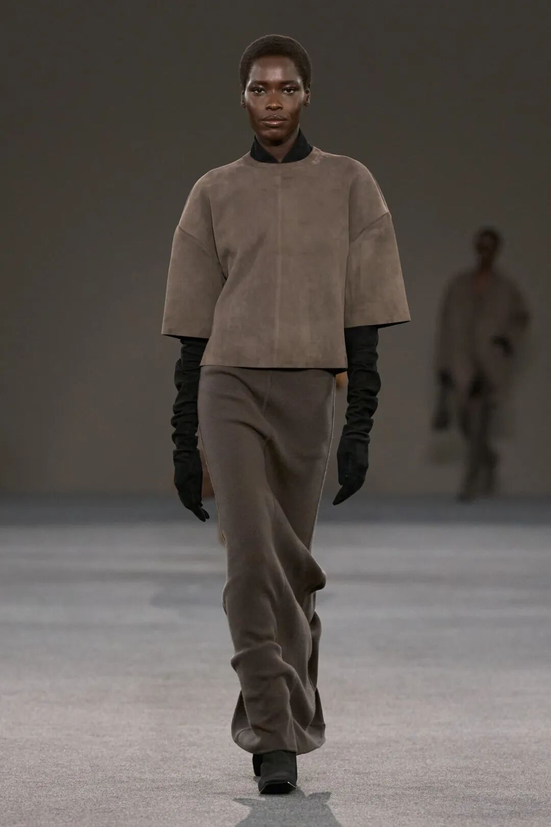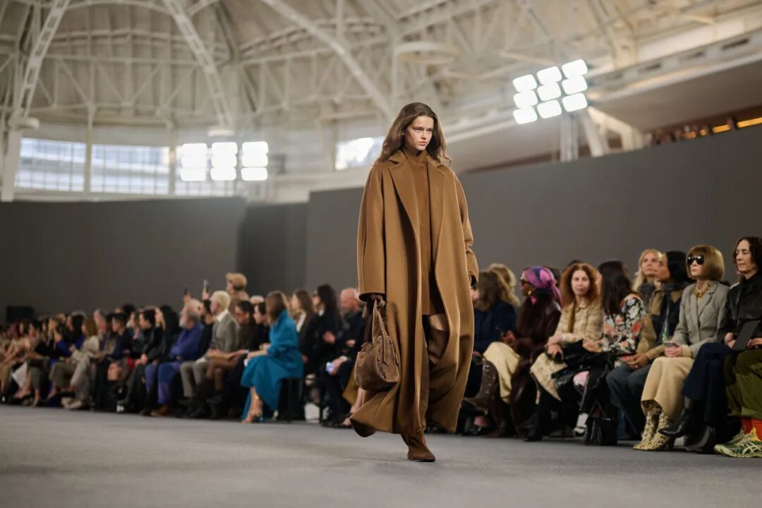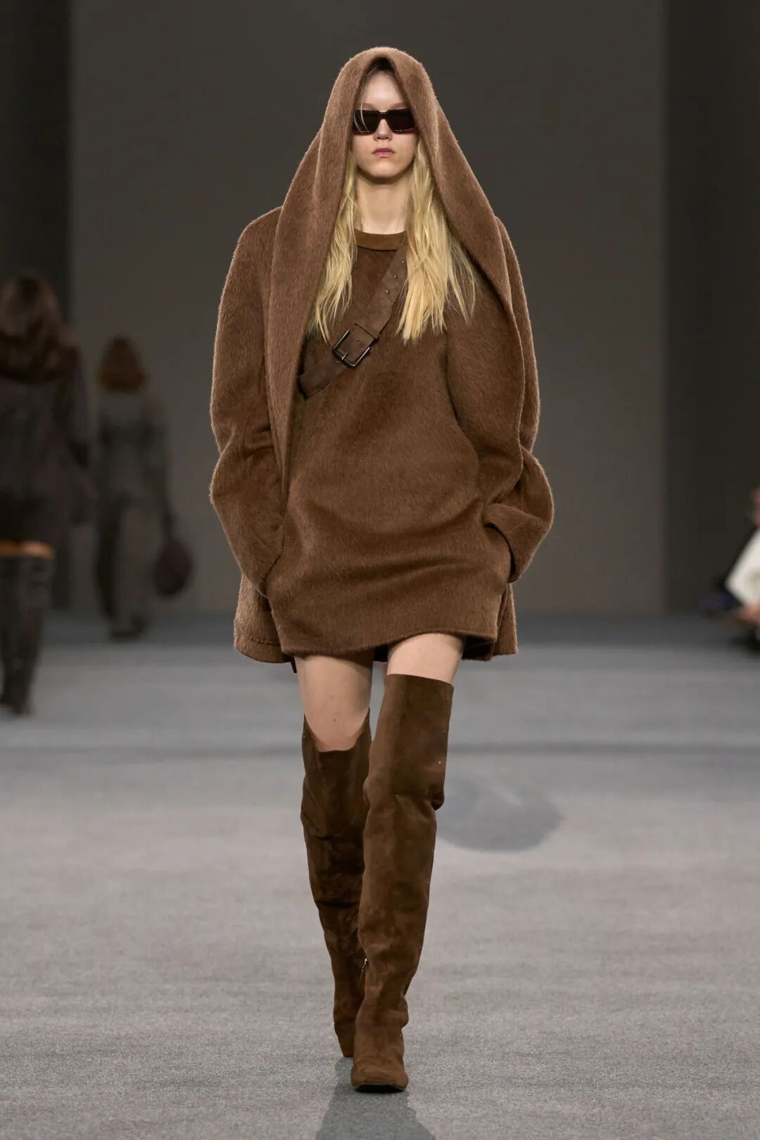 这一支点在本季化为可感知的织物。档案中经典的建筑感阔肩被重新校准,融入更松弛的现代呼吸;顶级羊绒、驼绒与羊驼毛在极致工艺下,获得了随穿戴者一同成长的“记忆”。那些精致的流苏边缘与麂皮光泽,仿佛是时间书写时自然留下的笔触,标记着“新”从“故”中孕育而出的过程。