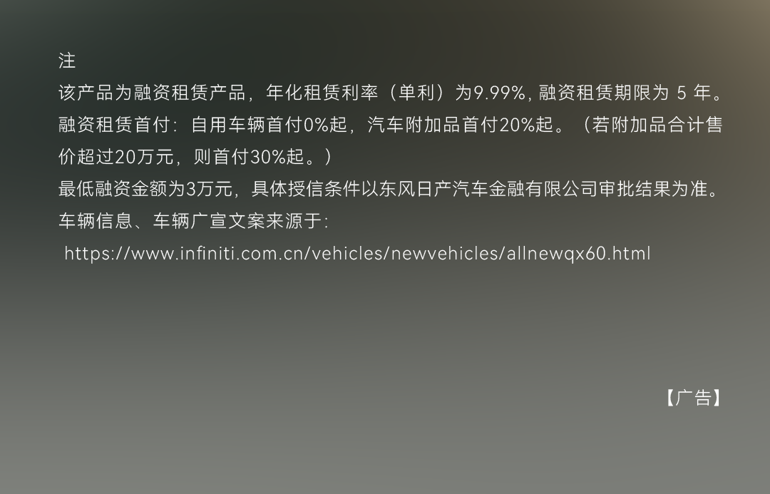 摘要:东风英菲尼迪QX60 陪你每一步都走得更稳