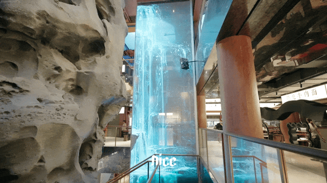 光影交织间,飞檐斗栱化为叙事舞台,豫园食集全域宛若一幅流动的东方水墨画,中央电梯以约14米高的廿四节气长卷装饰,搭配高9米的太湖石装置,营造出别样东方意境。