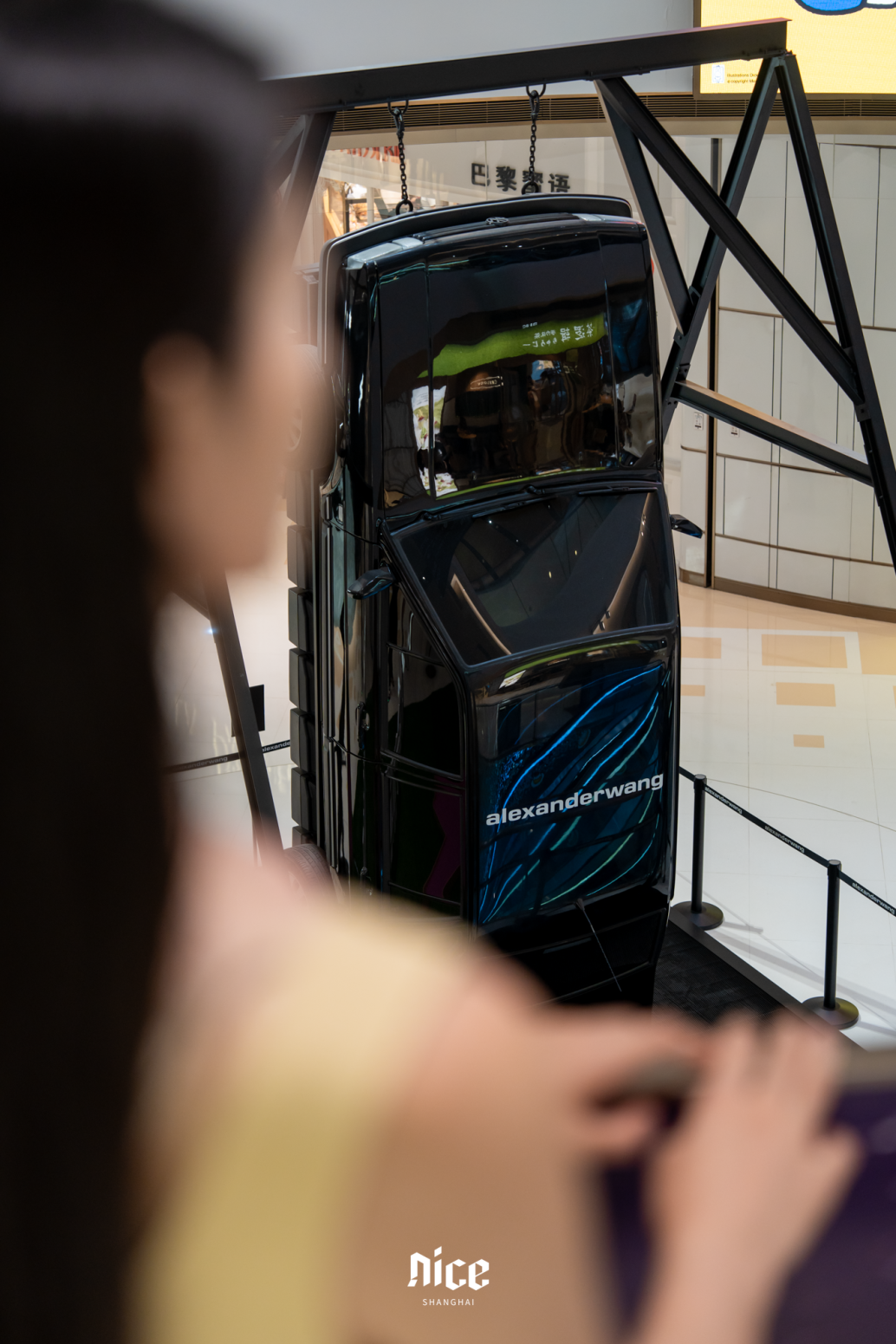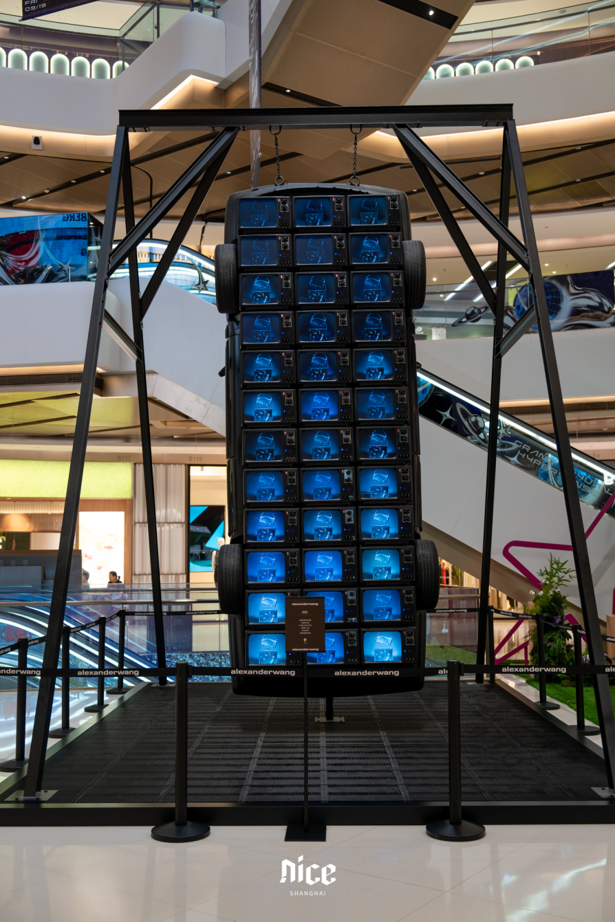 南区一楼小中庭,时尚品牌Alexander Wang创作的《WANG·巡航》汽车艺术装置,以机械美学演绎速度与艺术的交融,速来get酷炫大片!