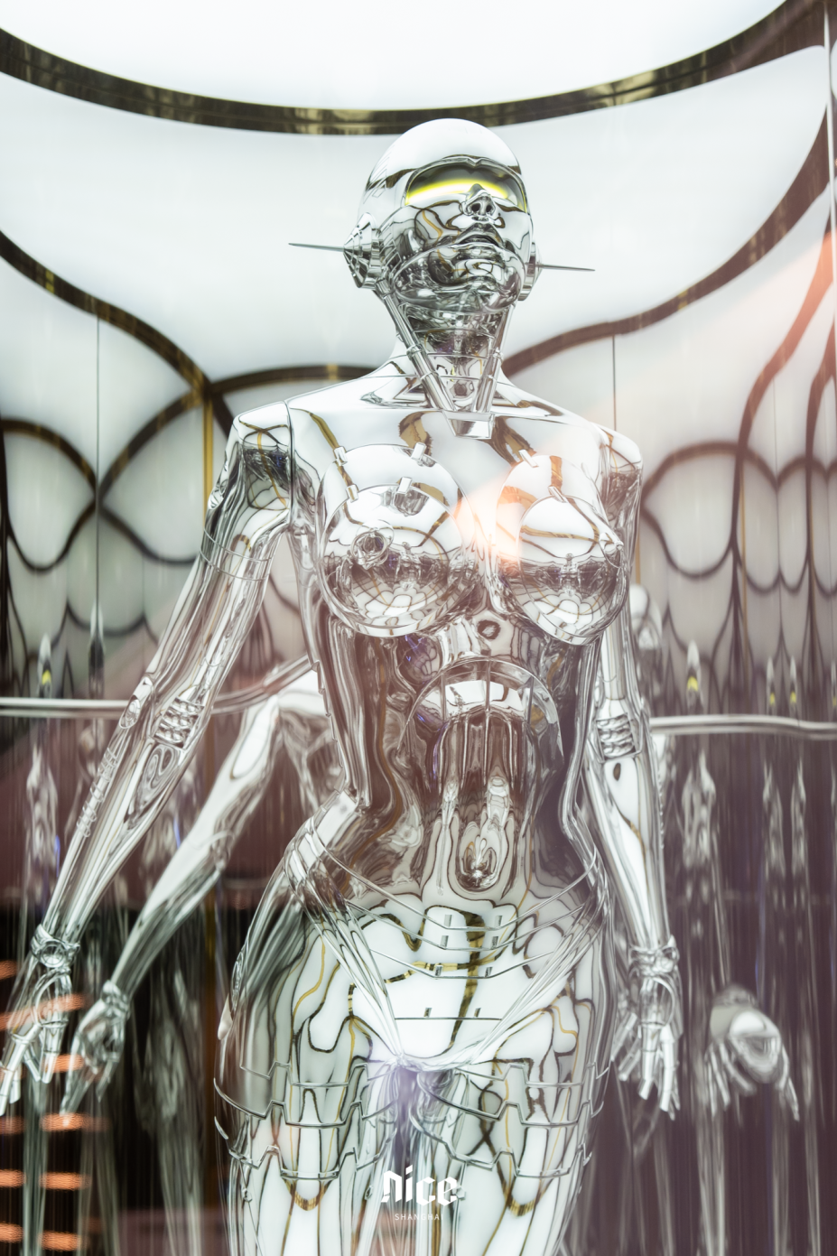 火出圈的日本艺术家空山基作品《机械姬》,惊喜亮相二楼VIP lounge中,以金属与柔美曲线的对比,探讨科技的未来可能,解锁不一样的购物体验。
